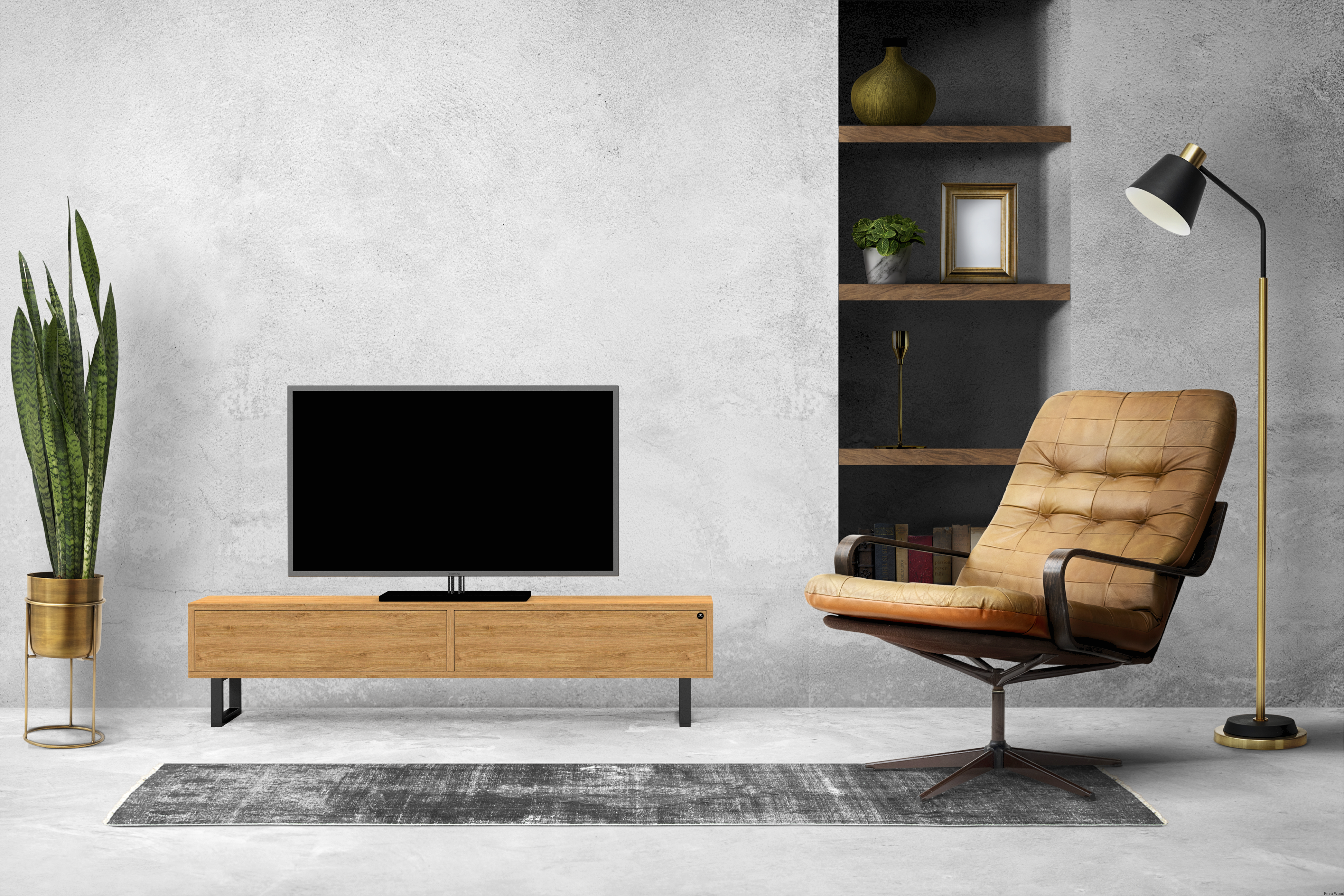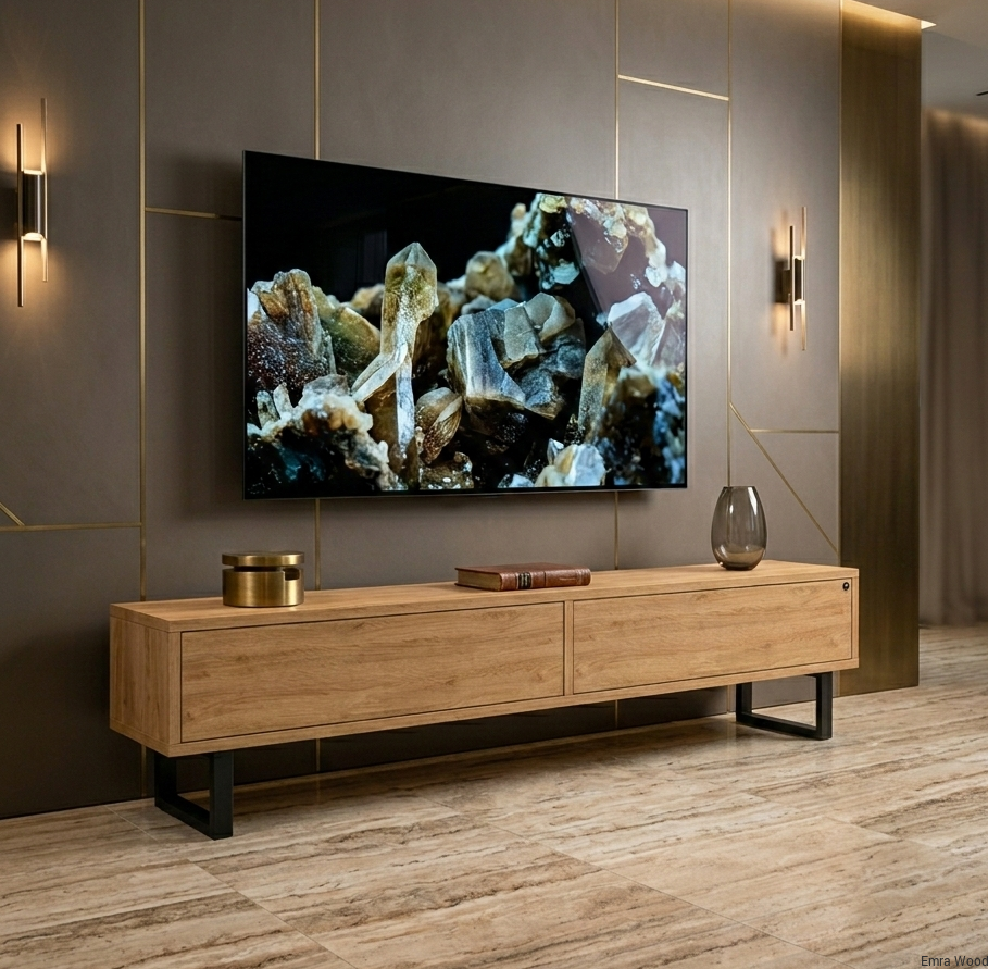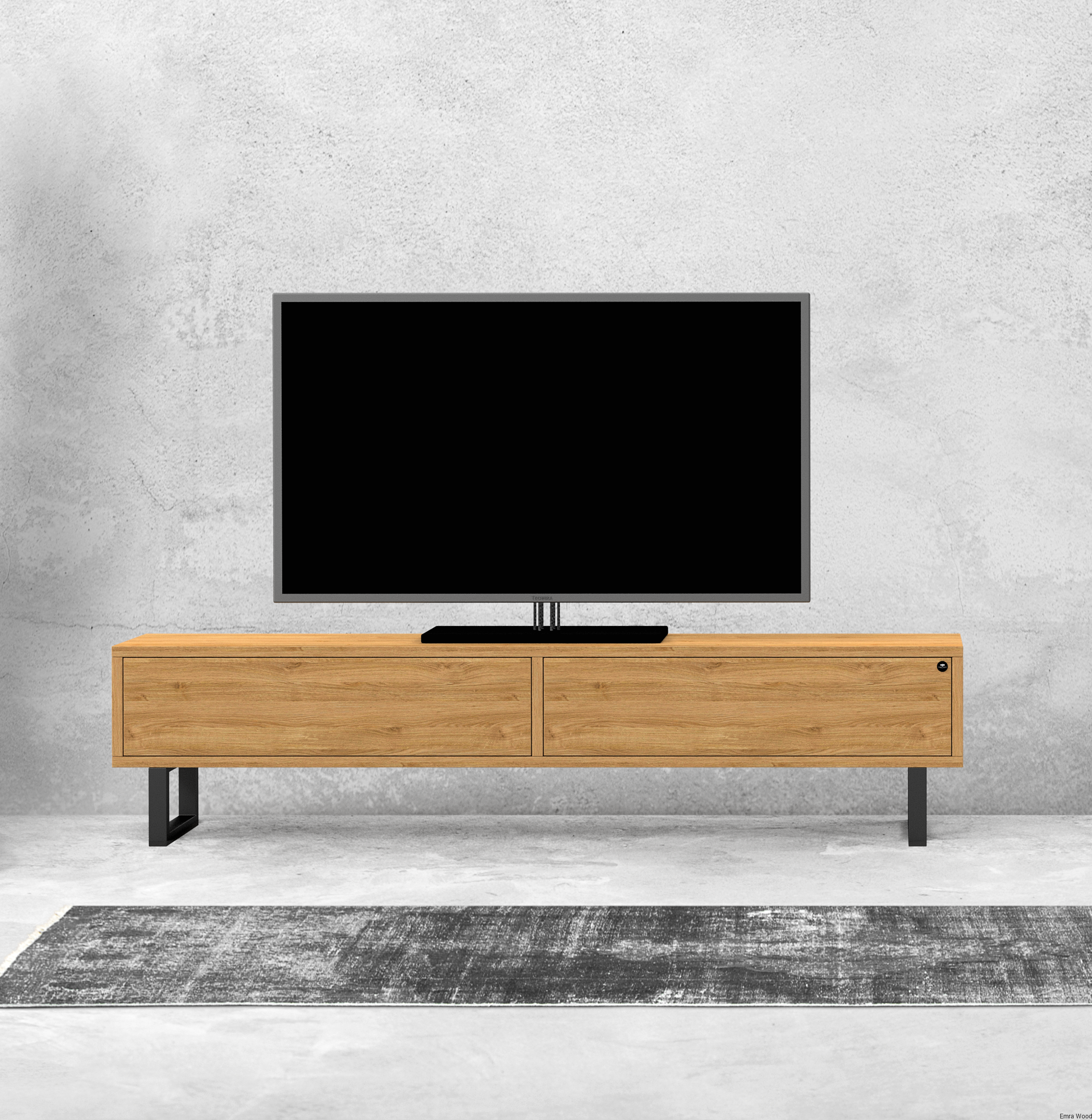SZAFKA RTV / Gatunek Drewna DĄB LOFT / / Stelaż Naturalny Lakier / noga metalowa czarna / model RTV-78