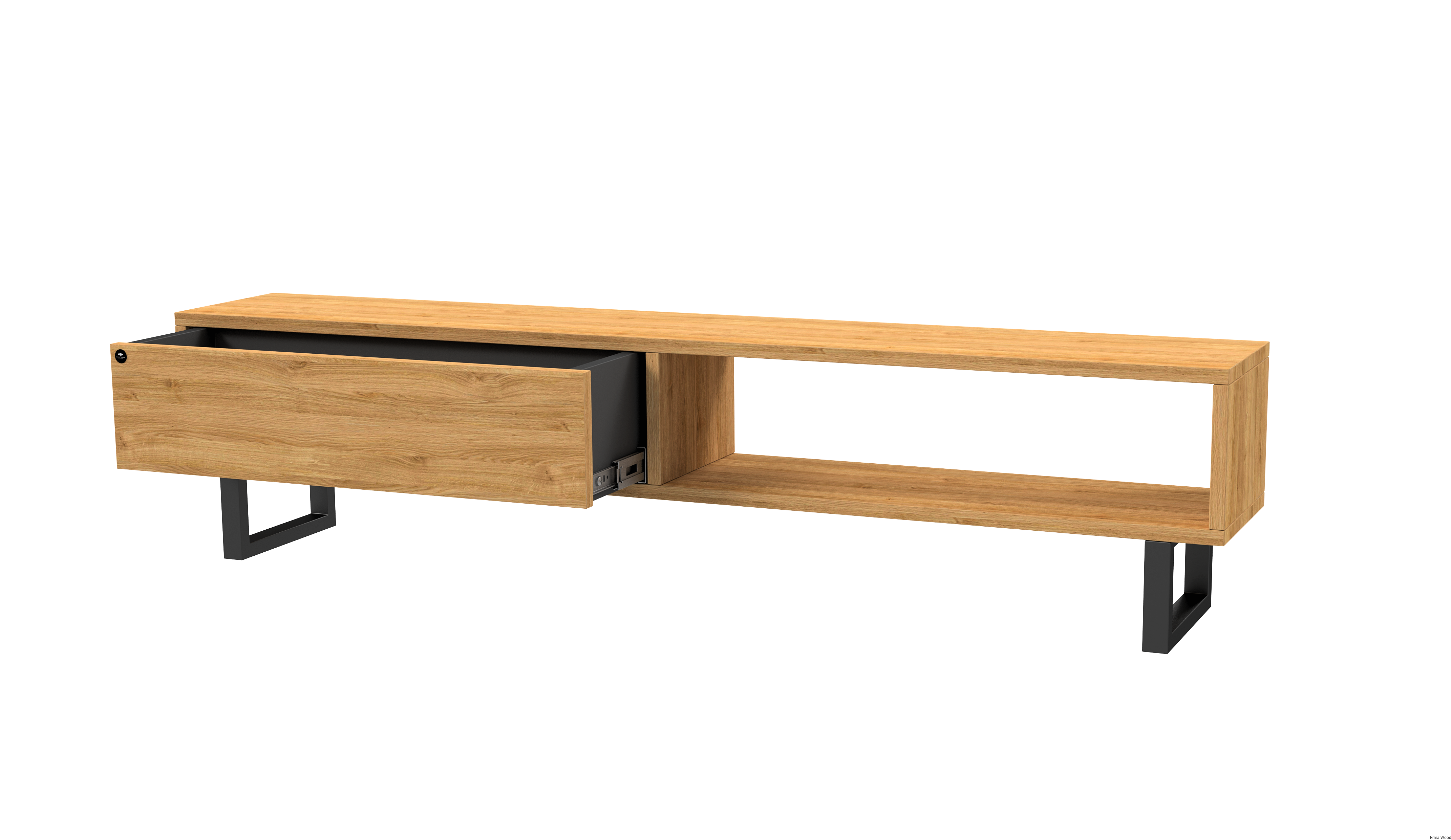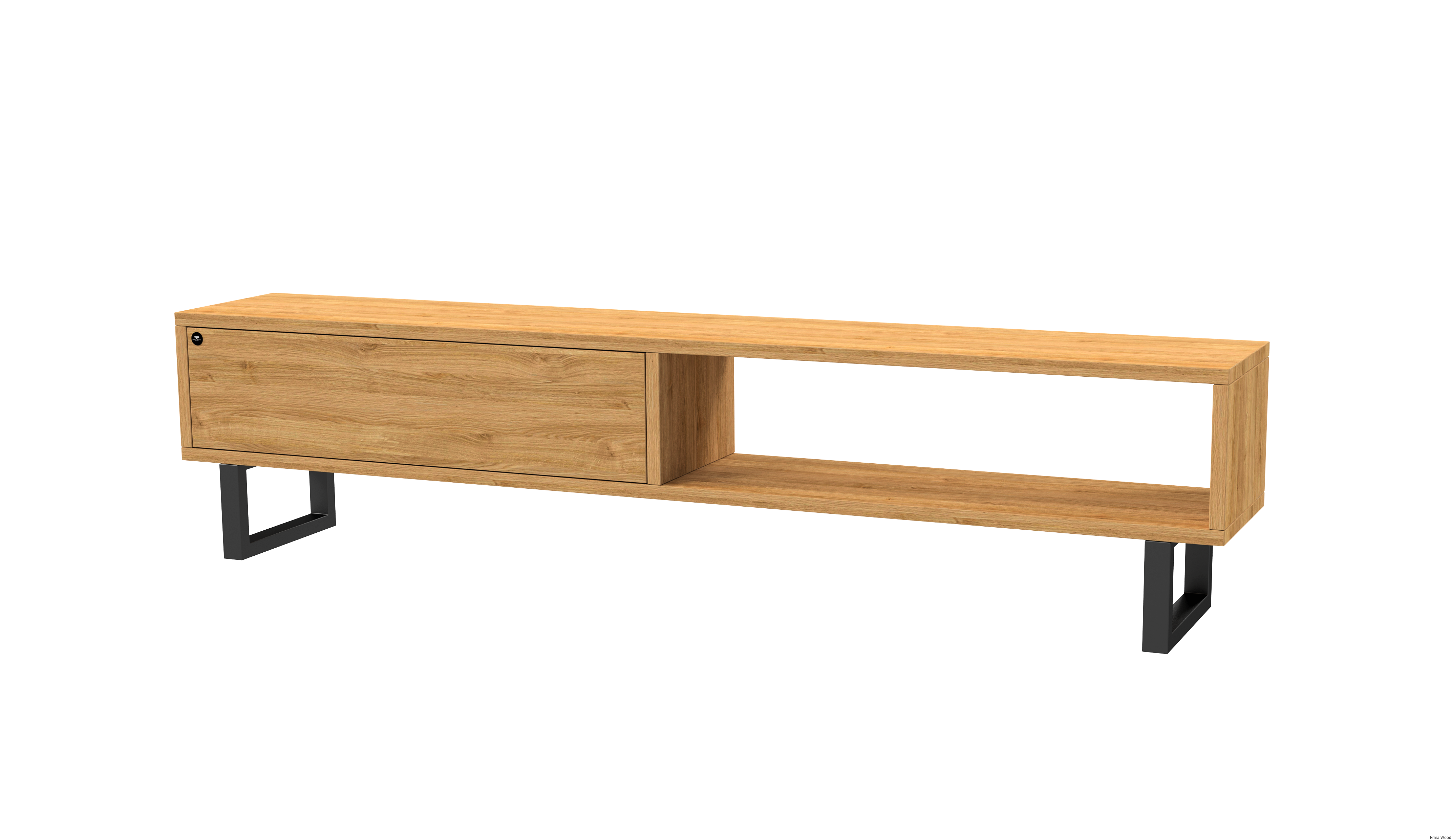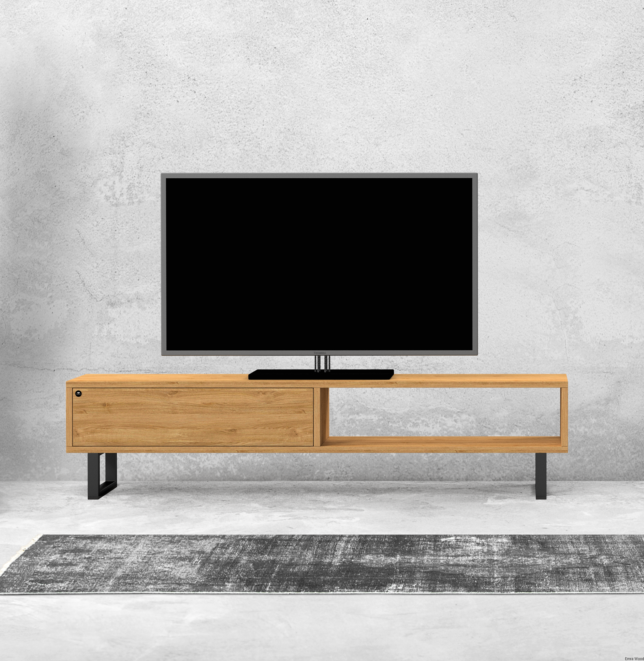 SZAFKA RTV / Gatunek Drewna DĄB LOFT / / Stelaż Naturalny Lakier / noga metalowa czarna / model RTV-79