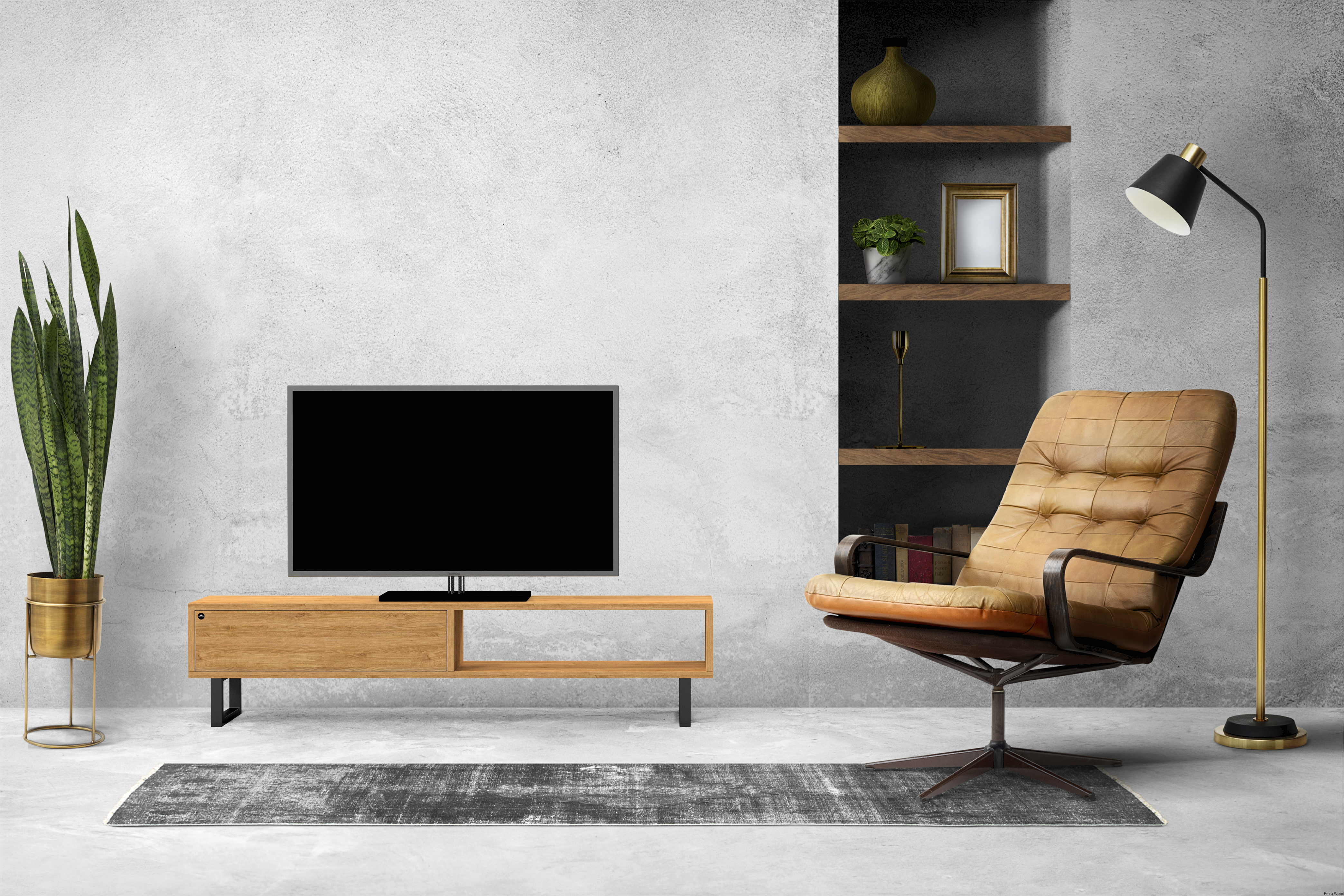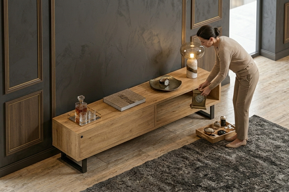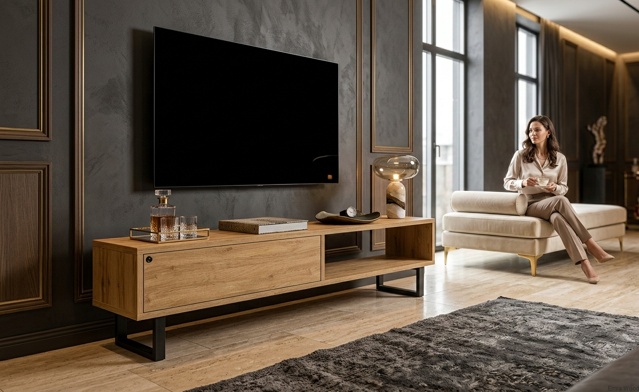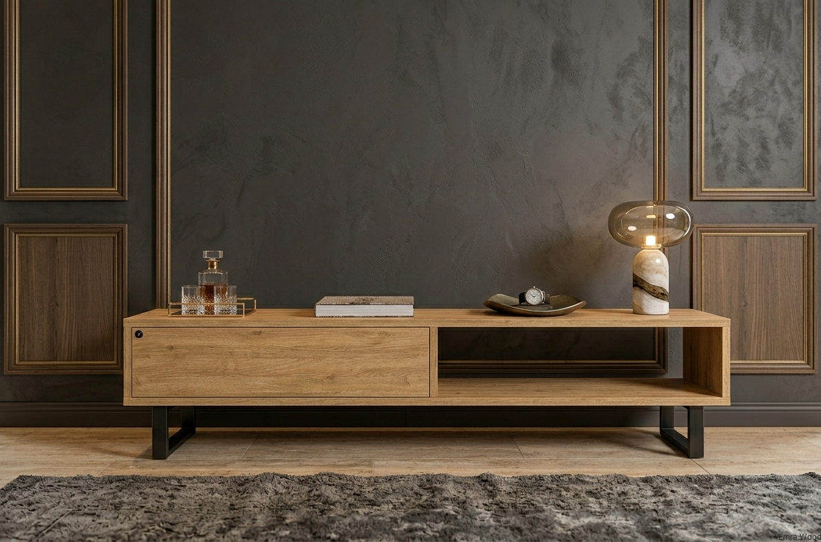 SZAFKA RTV / Gatunek Drewna DĄB LOFT / / Stelaż Naturalny Lakier / noga metalowa czarna / model RTV-79