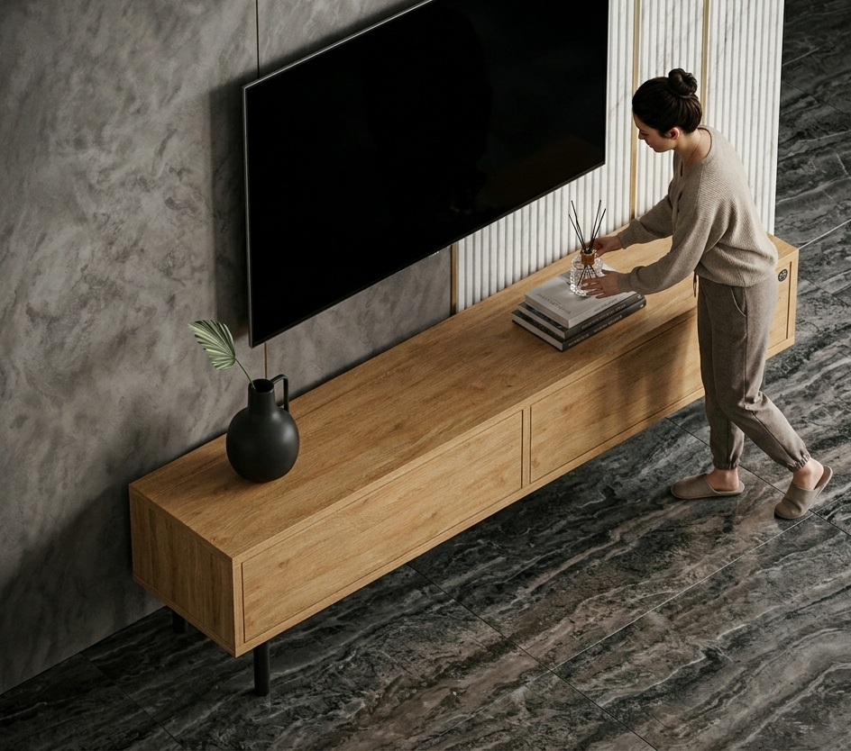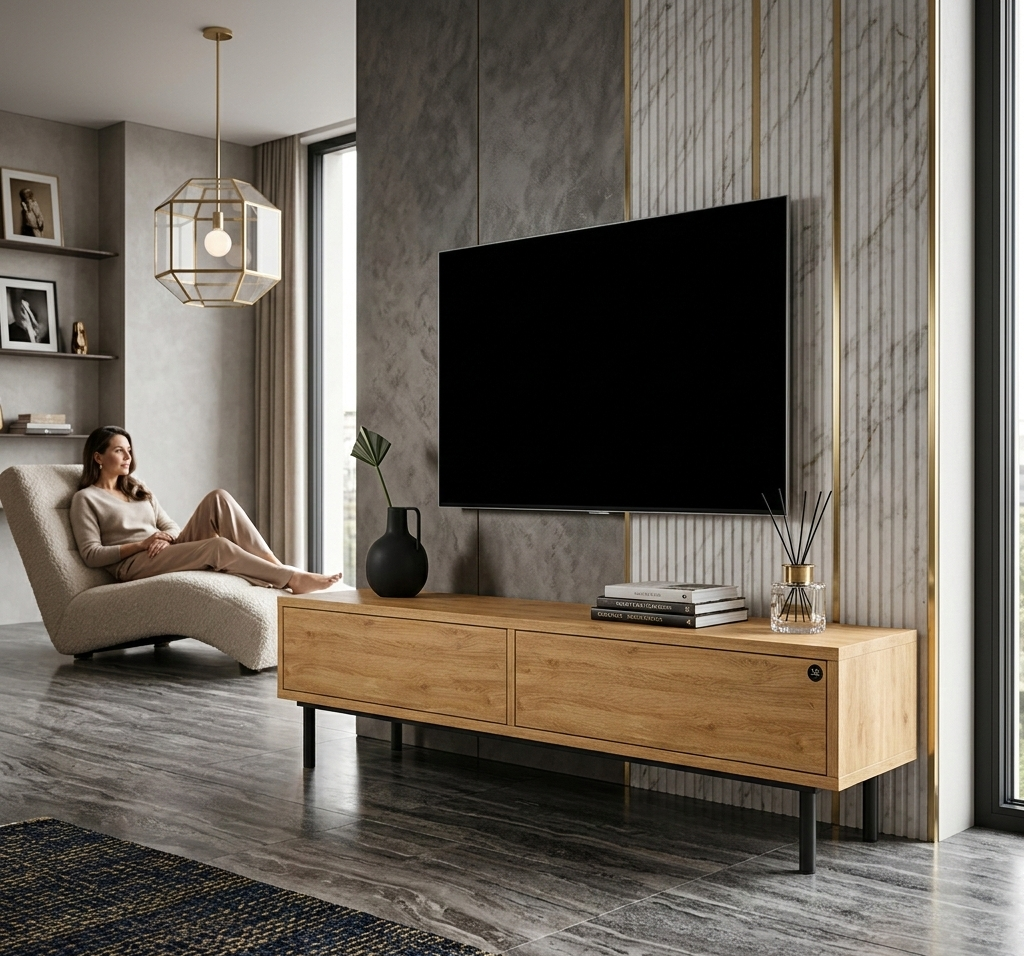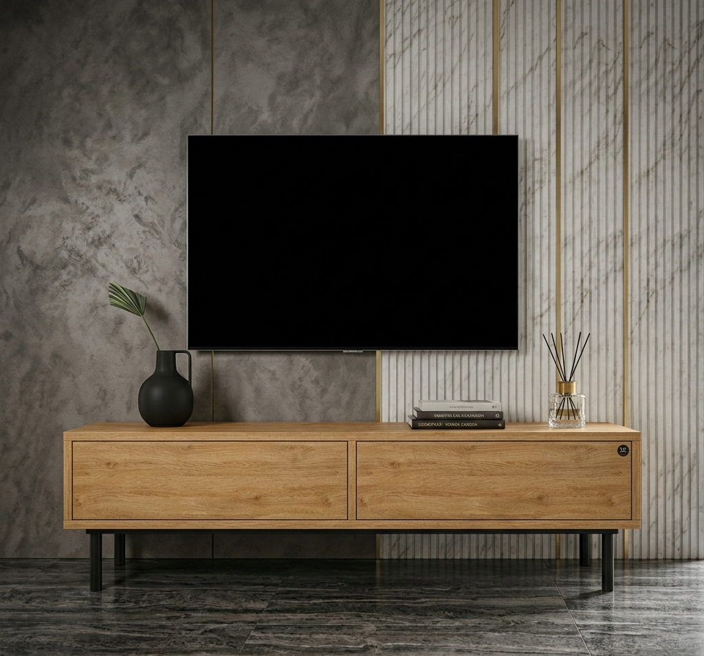 SZAFKA RTV / Gatunek Drewna DĄB LOFT / / Stelaż Naturalny Lakier / noga metalowa czarna / model RTV-81