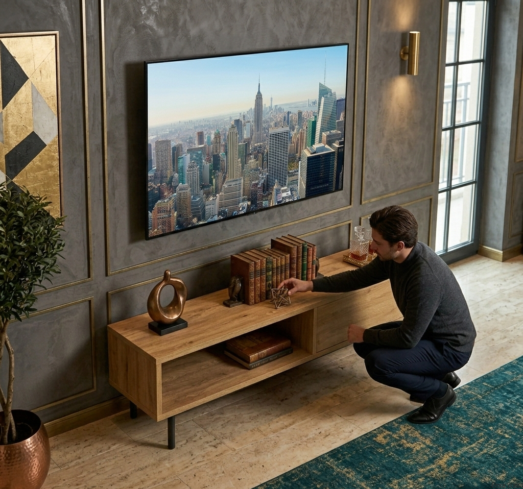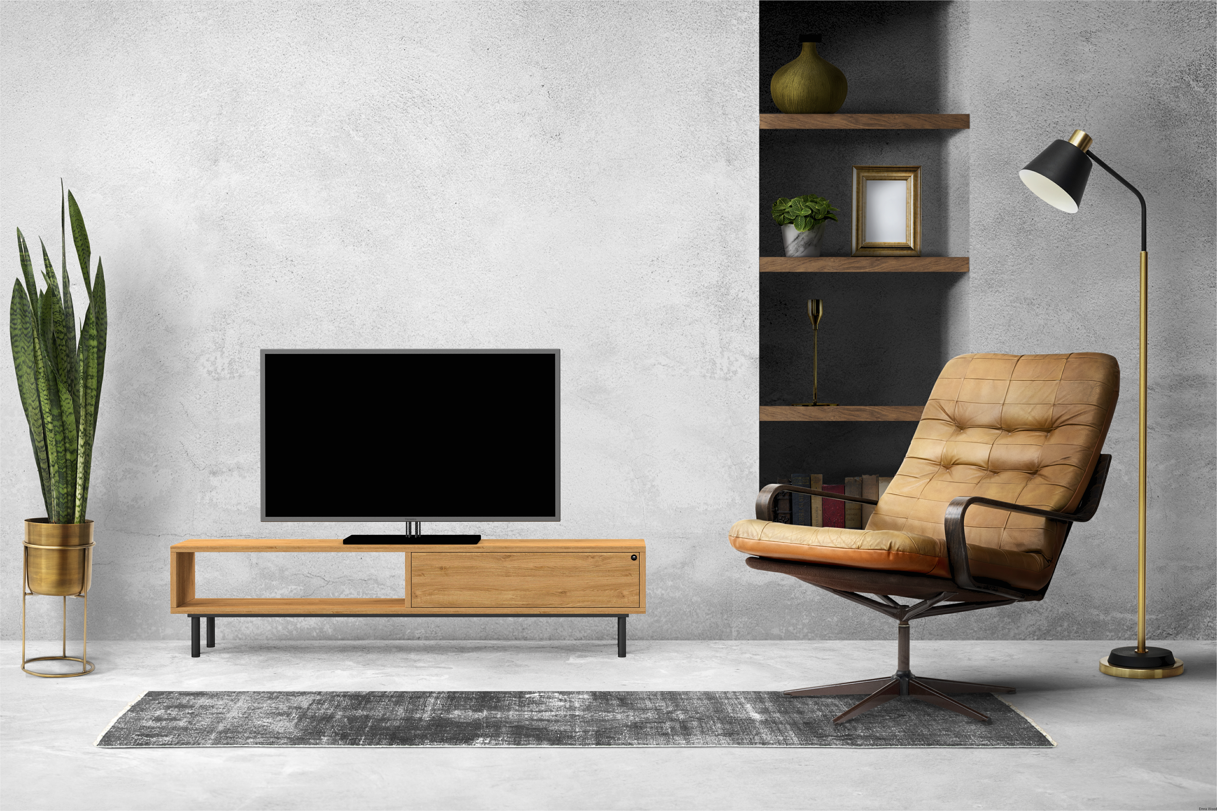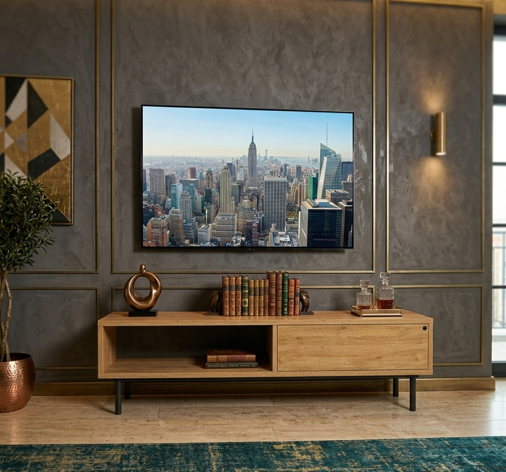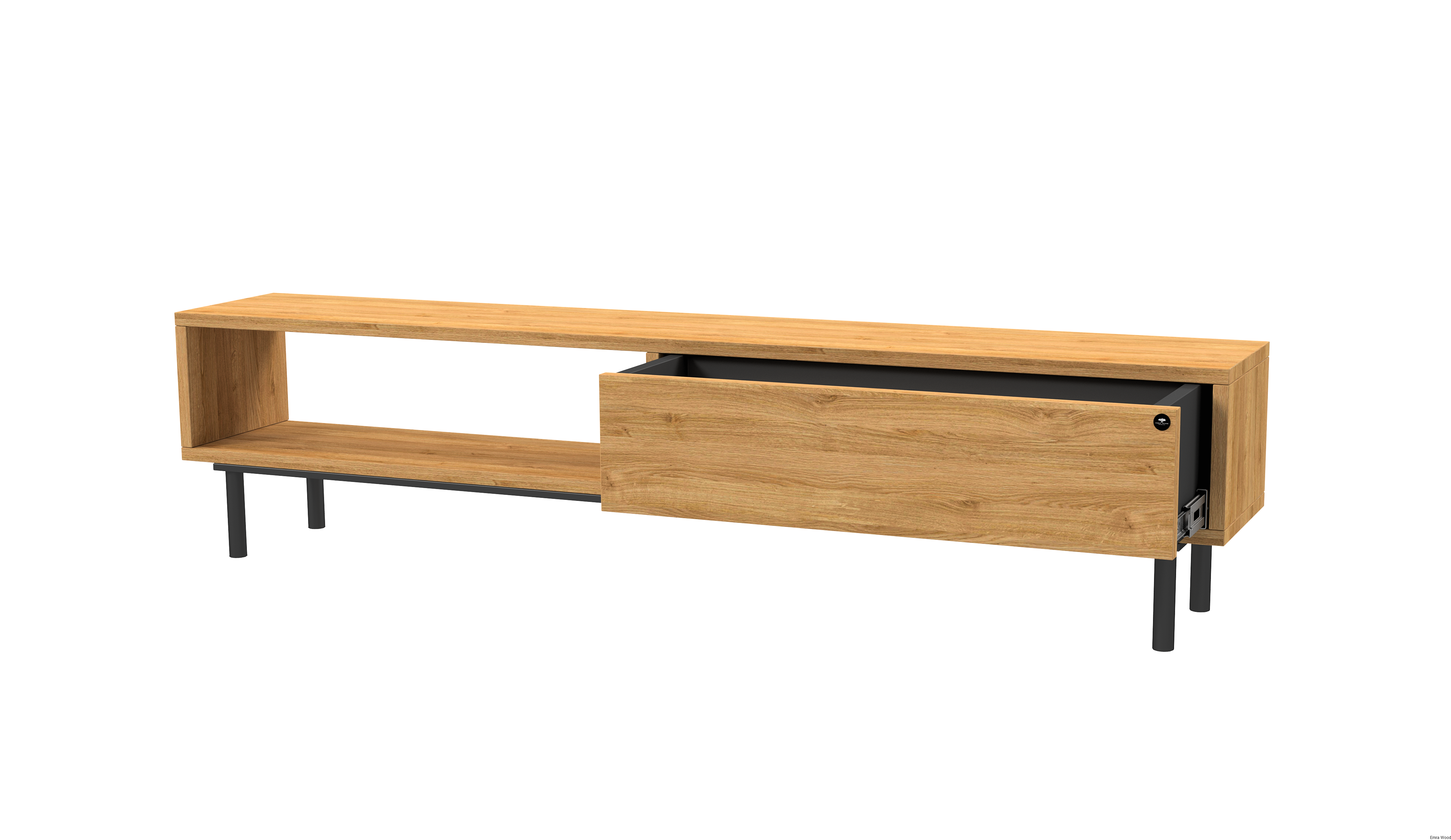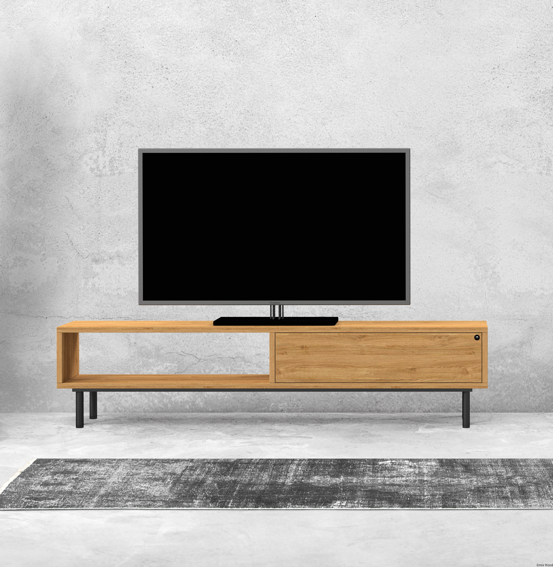 SZAFKA RTV / Gatunek Drewna DĄB LOFT / / Stelaż Naturalny Lakier / noga metalowa czarna / model RTV-83