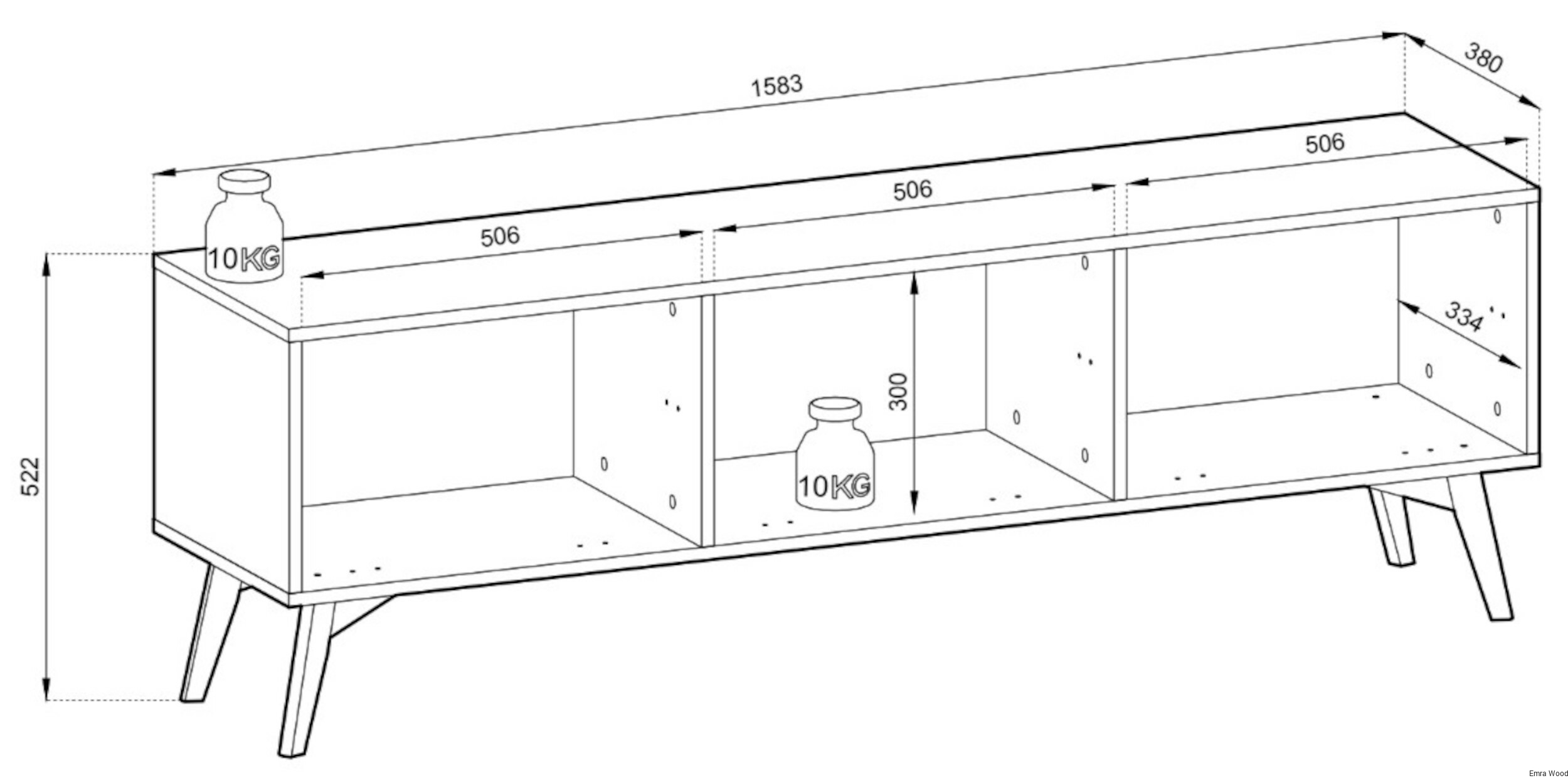 • Wymiary (wys x szer x gł ): 52 cm x 158 cm x 38 cm,