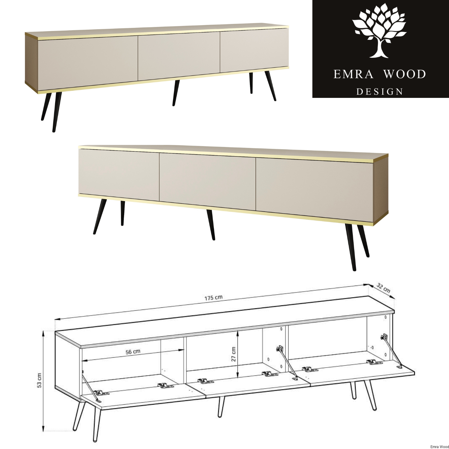 Szafka RTV Beżowa - Złota  175 cm Noga CzarnaSzafka RTV Beżowa - Złota  175 cm Noga Czarna