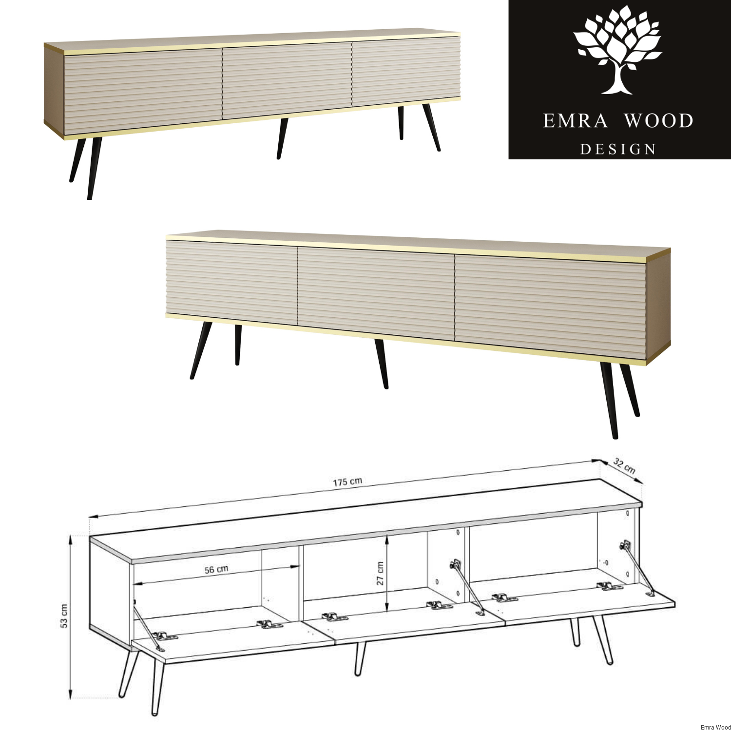 Szafka RTV Beżowa - Złota  175 cm Noga Czarna