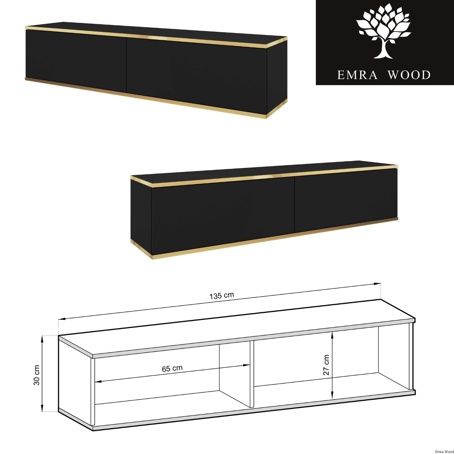 Szafka RTV Czarna - Złota  135 cm Noga Czarna -  Złota