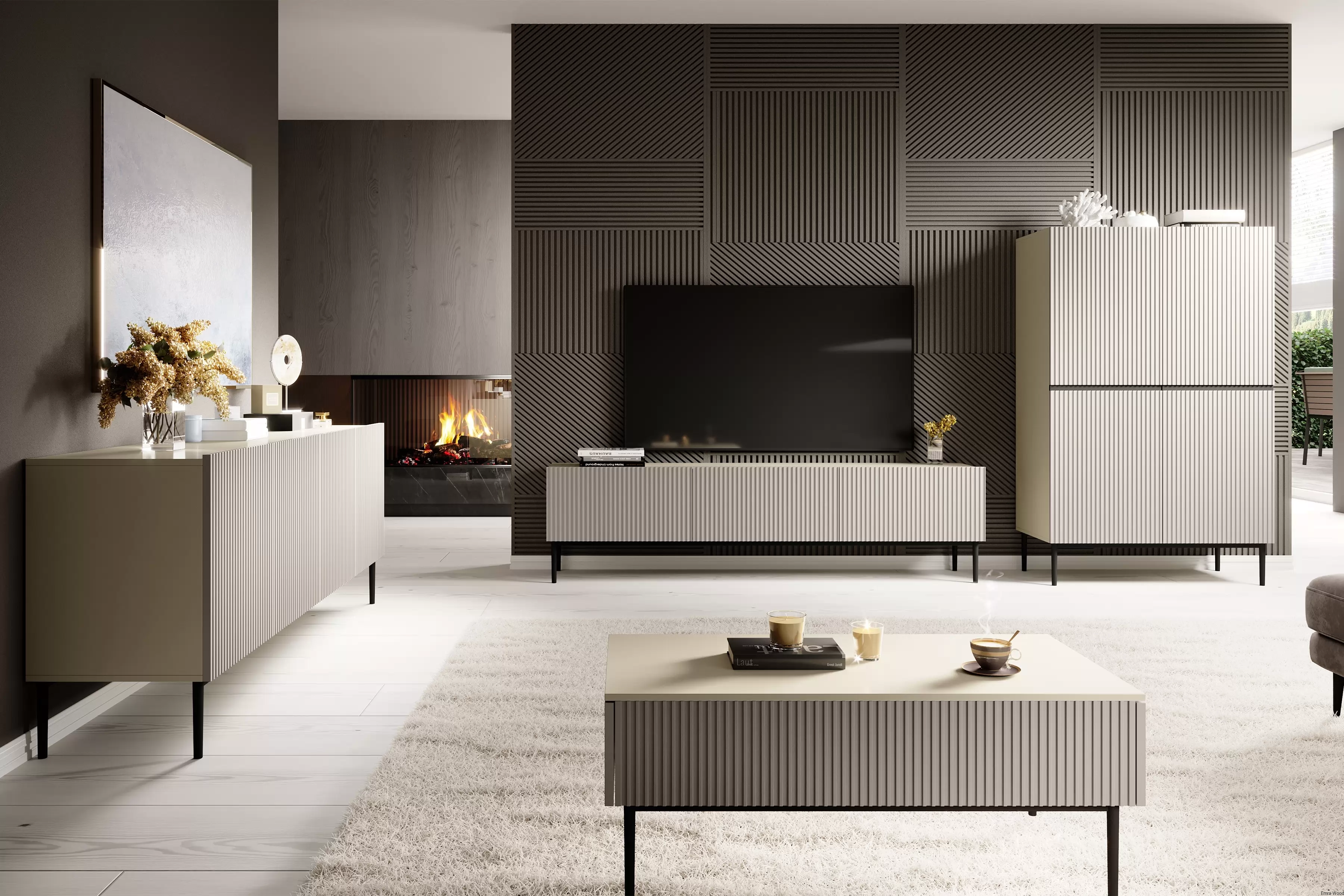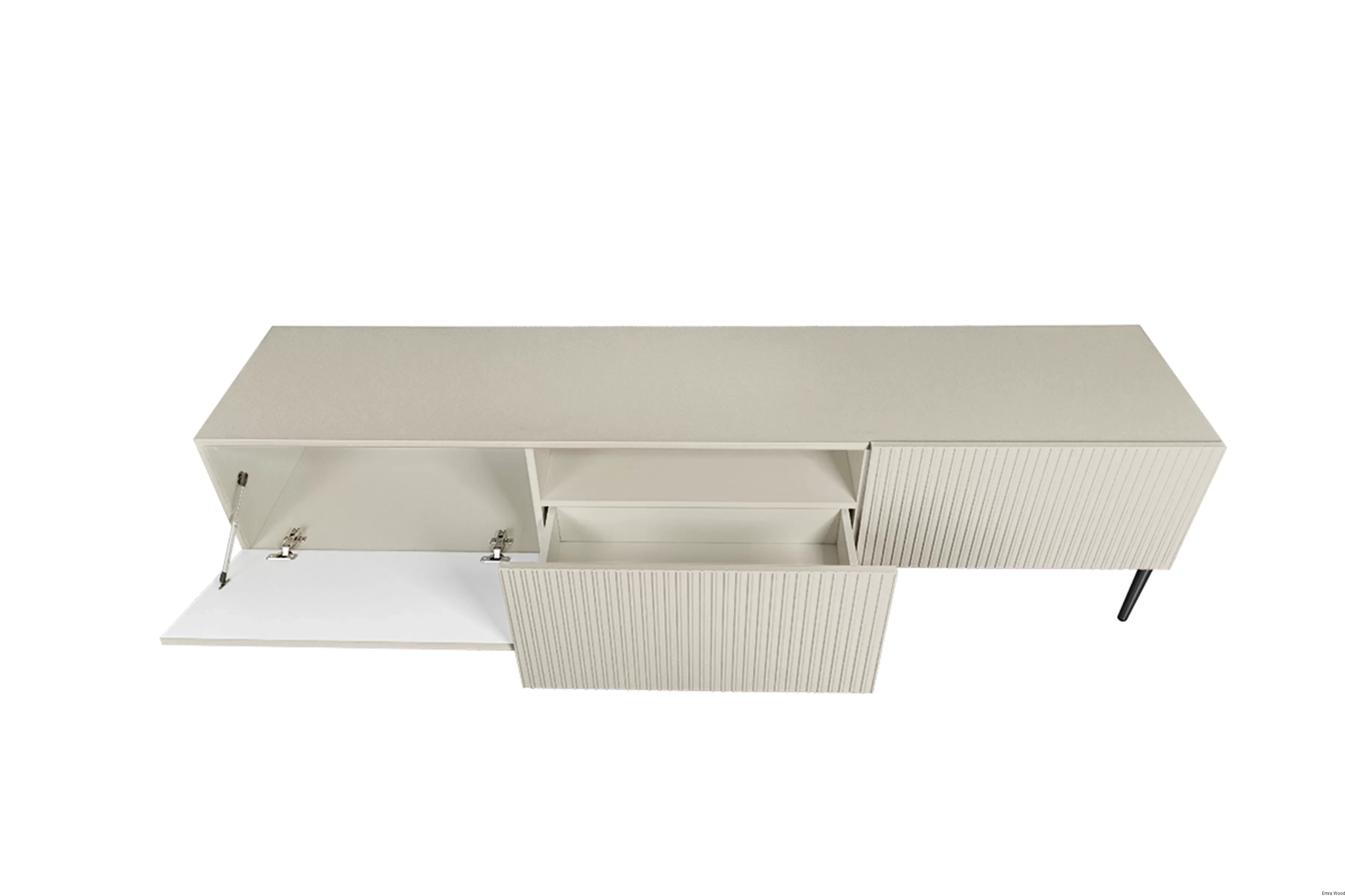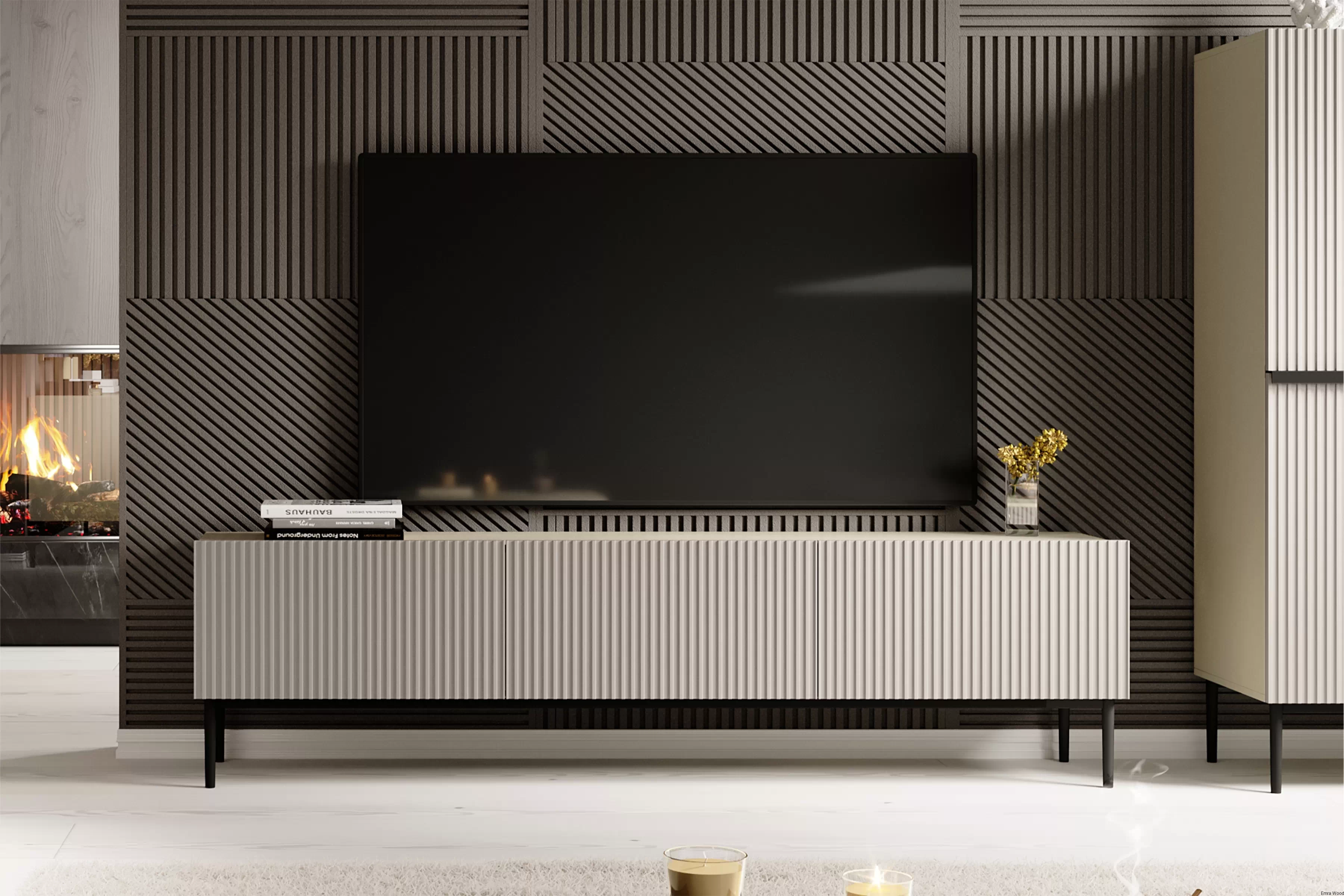 Subtelny kolor kaszmiru w matowym wykończeniu dodaje szafce elegancji i ponadczasowego uroku. Czarne, proszkowo malowane nogi są nie tylko stylowym akcentem, ale również gwarantują stabilność mebla.