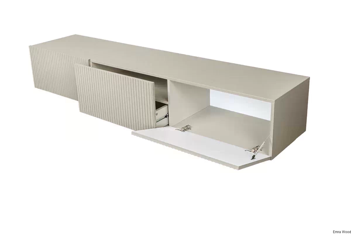 Czy szukasz mebla, który nie tylko wprowadzi do Twojego salonu elegancką atmosferę, ale też pomoże Ci utrzymać porządek? Wisząca szafka RTV Nicole z szufladą o szerokości 200 cm w odcieniu kaszmiru to wszystko, czego potrzebujesz.
