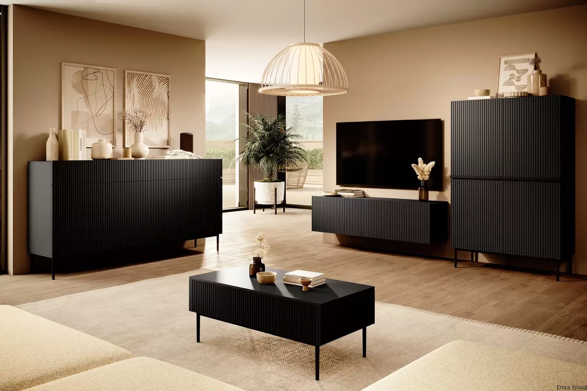 Wyjątkowy design tego mebla, z matowym czarnym wykończeniem, sprawi, że stanie się ona prawdziwym centrum uwagi w Twoim salonie. Jej elegancka kolorystyka wprowadzi do Twojego wnętrza nutę nowoczesności i klasy.