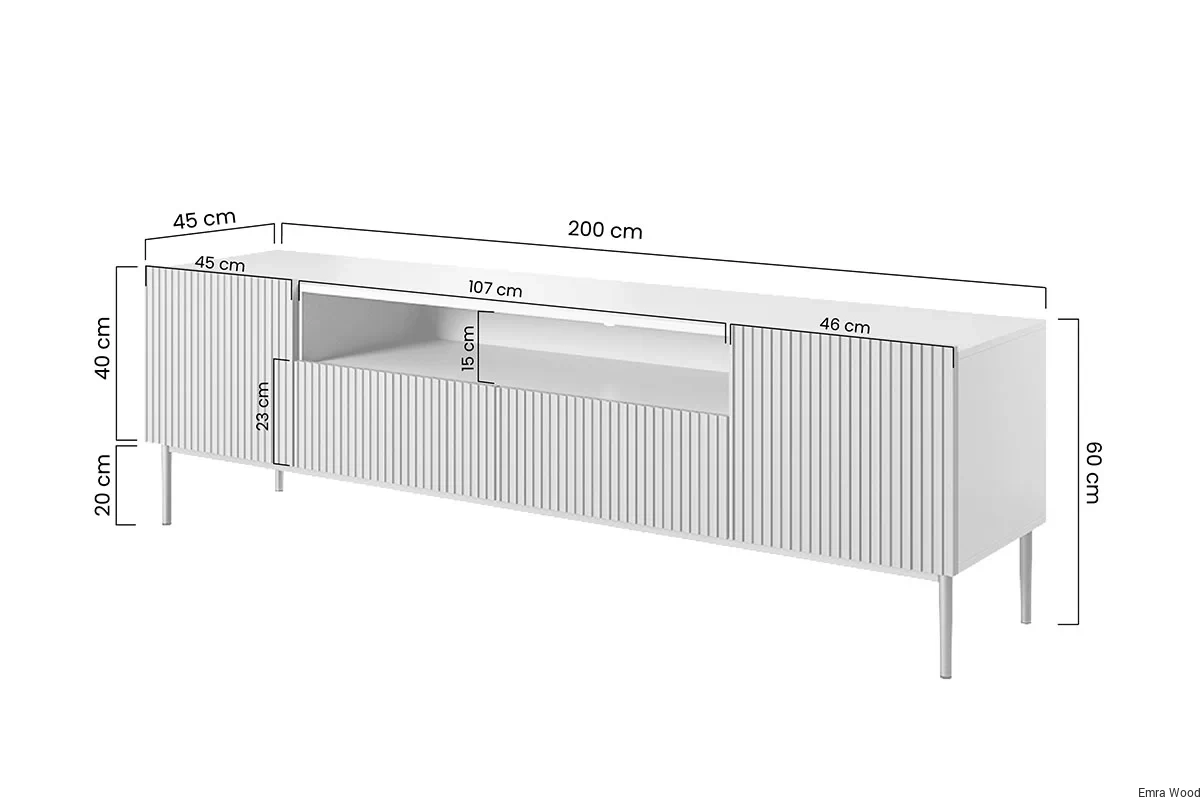 Ta szafka RTV nie tylko wygląda dobrze, ale jest również niezwykle funkcjonalna. Dwie szafki z półkami dają możliwość przechowywania gadżetów elektronicznych, a dwie szuflady zapewnią dodatkowe miejsce na sprzęt i okablowanie. Bezuchwytowe fronty wysunięte do góry, zapewniają łatwy dostęp do wnętrza mebla. Wysokiej jakości wykonanie z płyty MDF i metalu zapewni doskonały wygląd przez wiele lat.