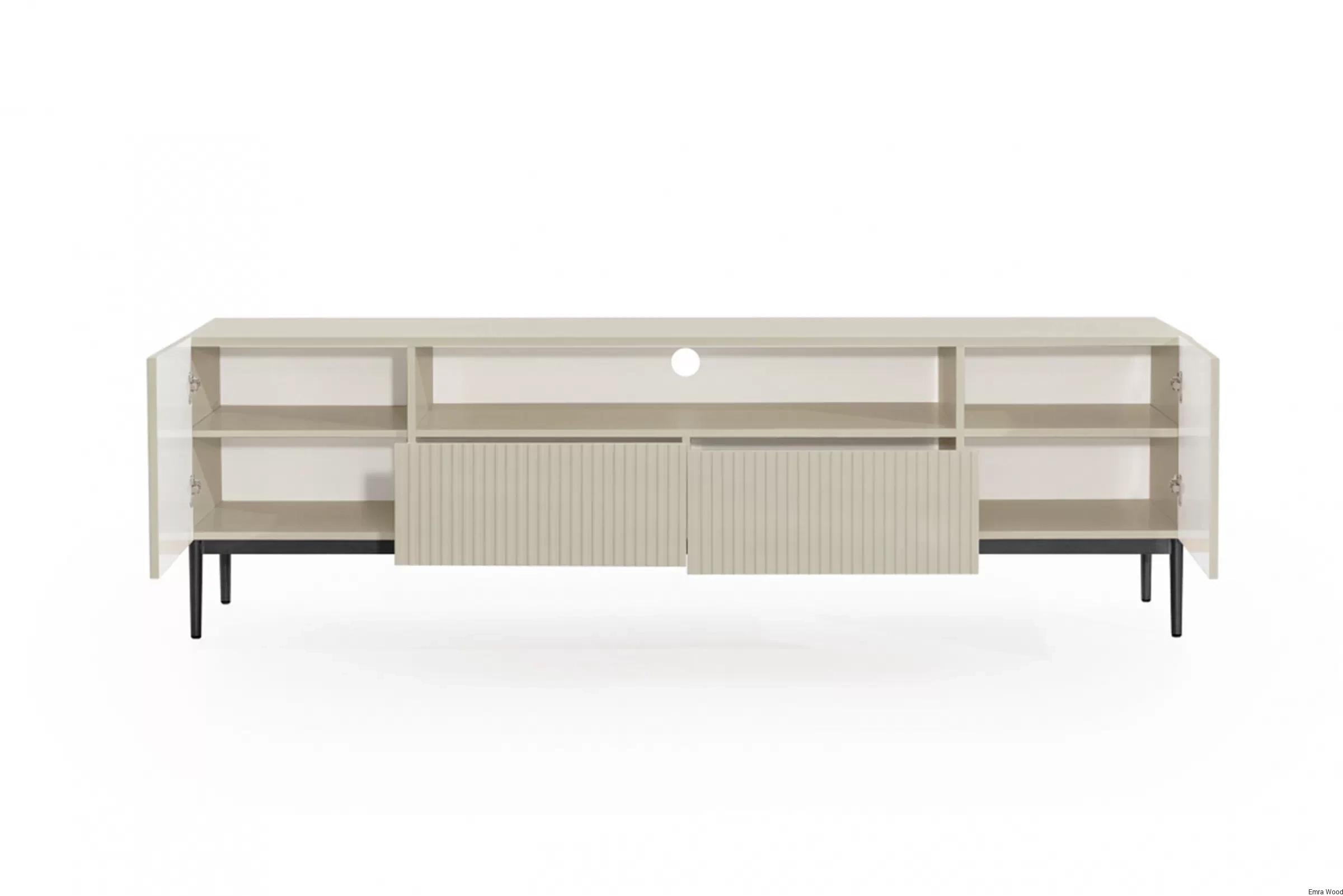 Czy zastanawiałeś się kiedyś, jak uporządkować przestrzeń wokół telewizora? Szafka RTV Nicole z wnęką i szufladami na metalowych nogach 200 cm - kaszmir / czarne nóżki to rozwiązanie, które spełni Twoje oczekiwania.