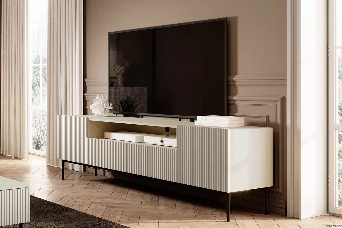 Mebel ten doskonale wpisze się w nowoczesne, minimalistyczne wnętrza. Jego uniwersalny design sprawi, że będzie pasował do różnych stylów aranżacji. Szafka RTV Nicole to mebel, który stanie się centralnym punktem Twojego salonu.
