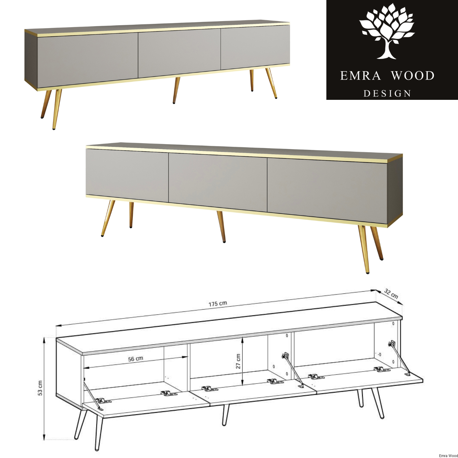Szafka RTV Szaro - Złota  175 cm Noga Czarna - ZłotaSzafka RTV Szaro - Złota  175 cm Noga Czarna - ZłotaSzafka RTV Szaro - Złota  175 cm Noga Czarna - Złota