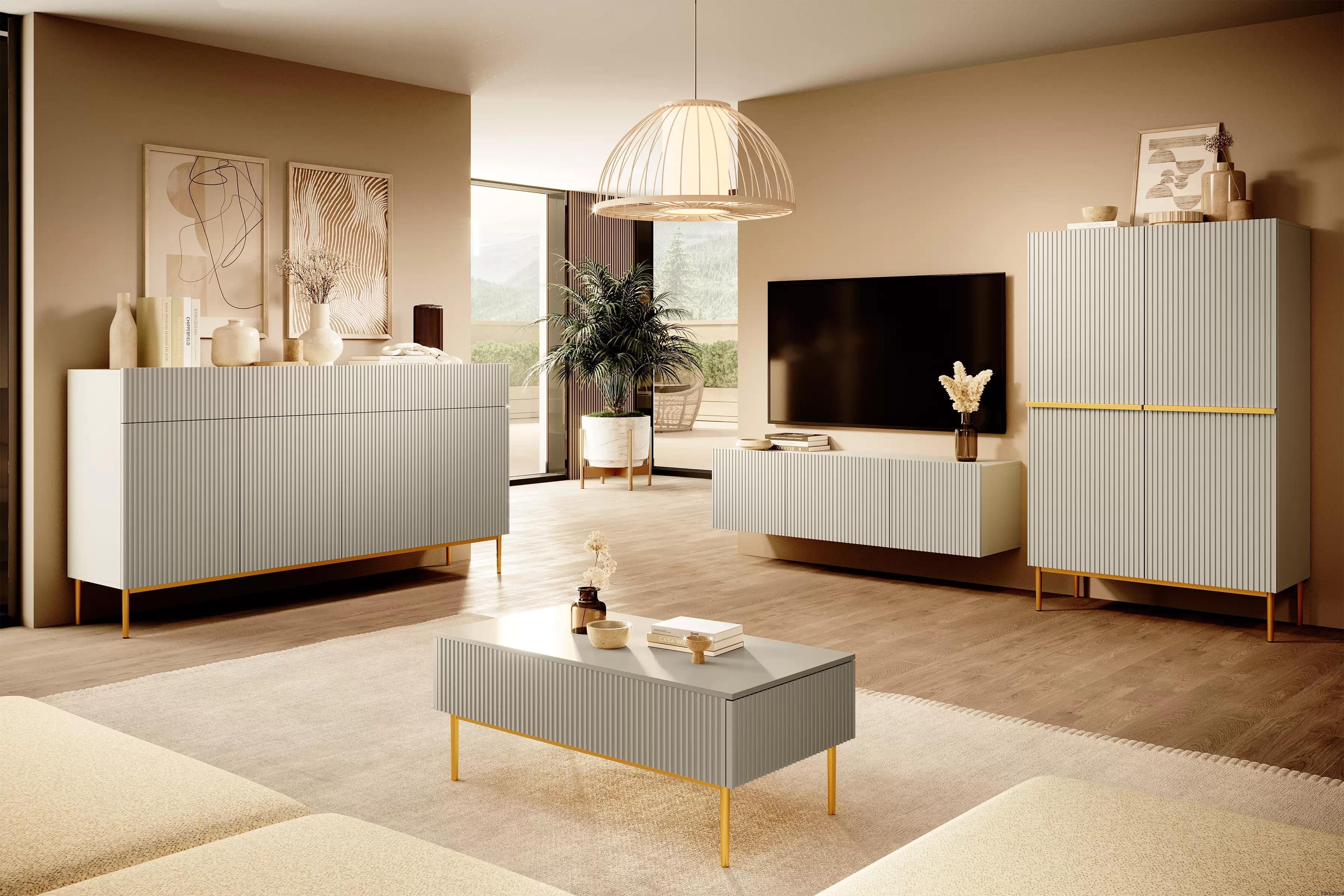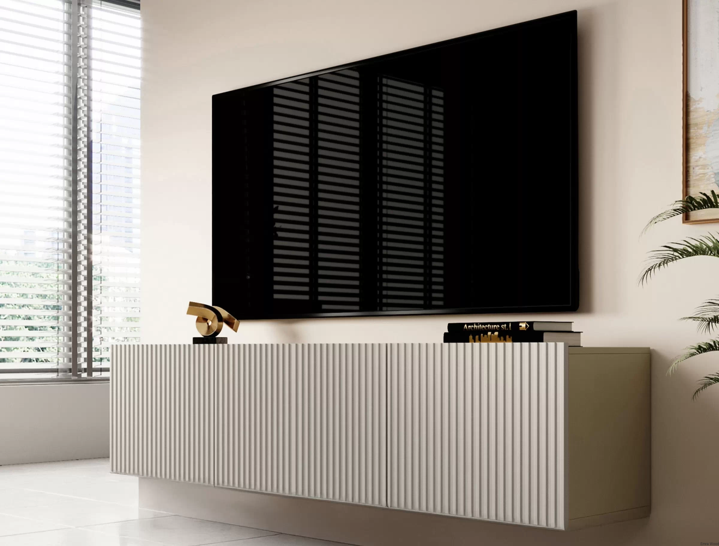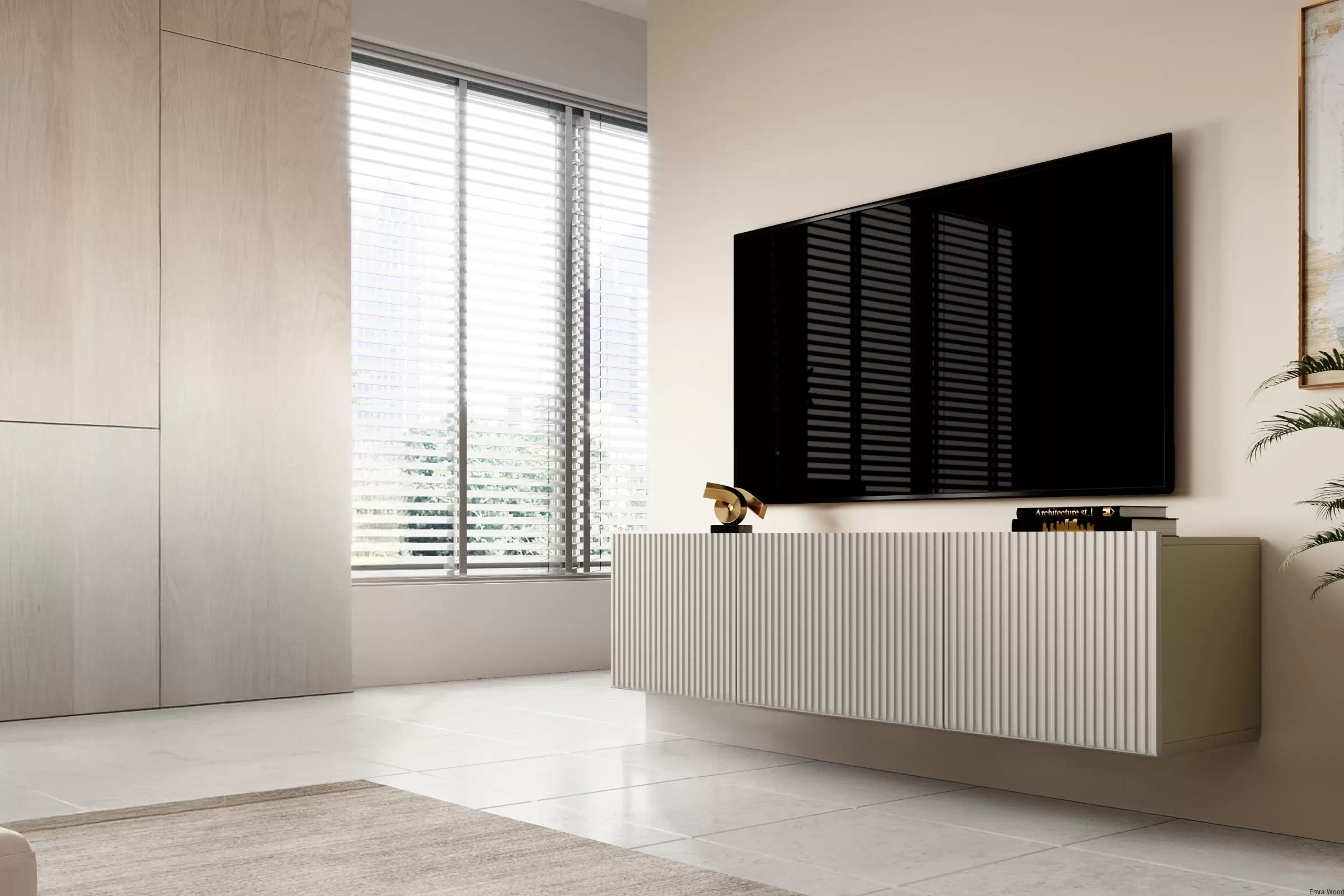 Szukasz idealnej szafki RTV do Twojego nowoczesnego salonu? Poznaj szafka RTV wisząca Nicole 150 cm z szufladą - kaszmir mat.
