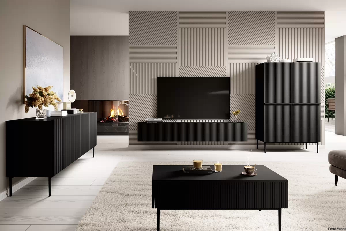 Wyjątkowy, czarny matowy kolor frontu i korpusu szafki dodaje jej elegancji i klasy. Ten uniwersalny kolor sprawi, że mebel będzie pasował do każdego wnętrza, niezależnie od jego stylu i kolorystyki. Ciemna barwa szafki RTV Nicole z szufladą stworzy kontrast w jasnych lub neutralnych wnętrzach, przyciągając wzrok i dodając głębi przestrzeni.