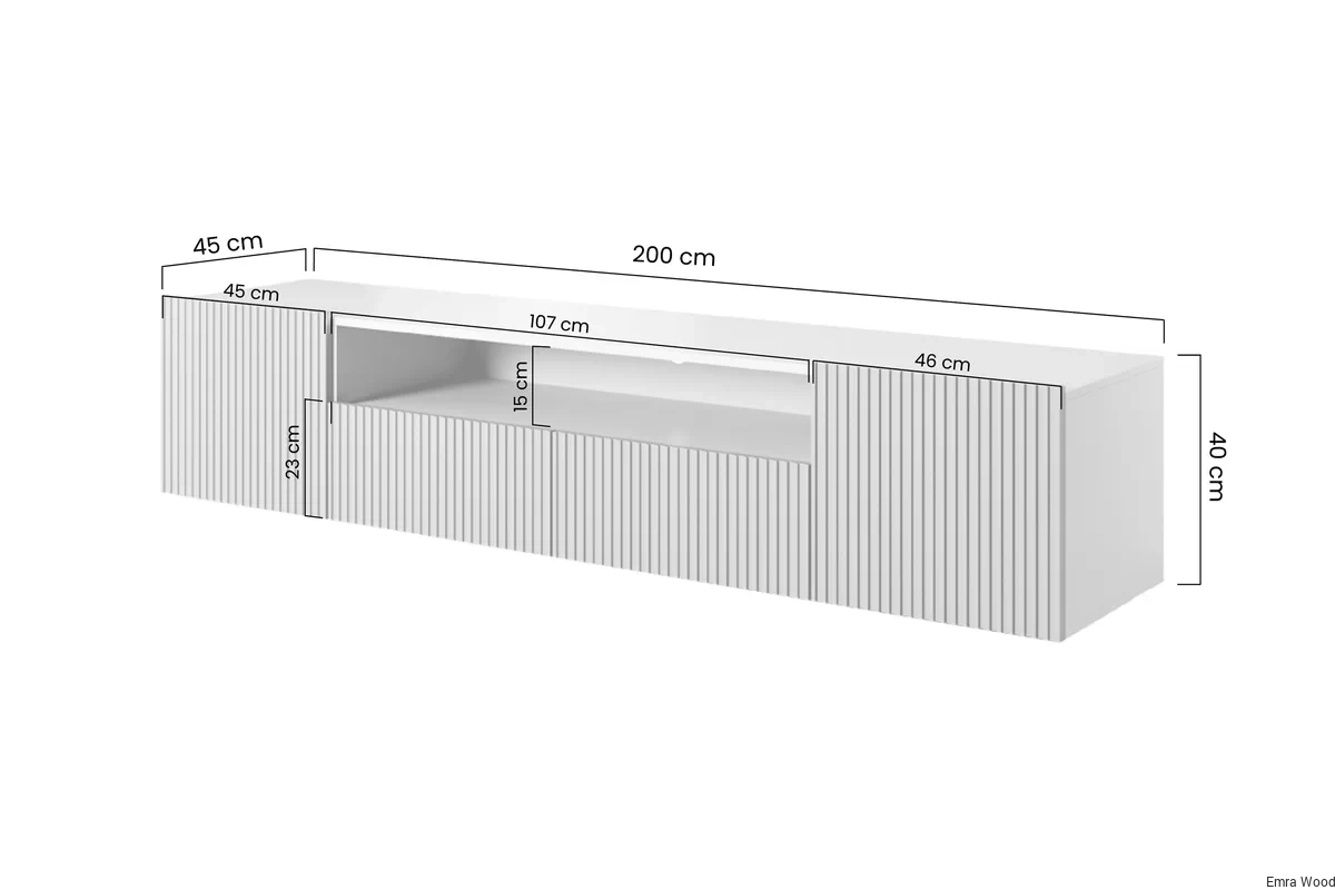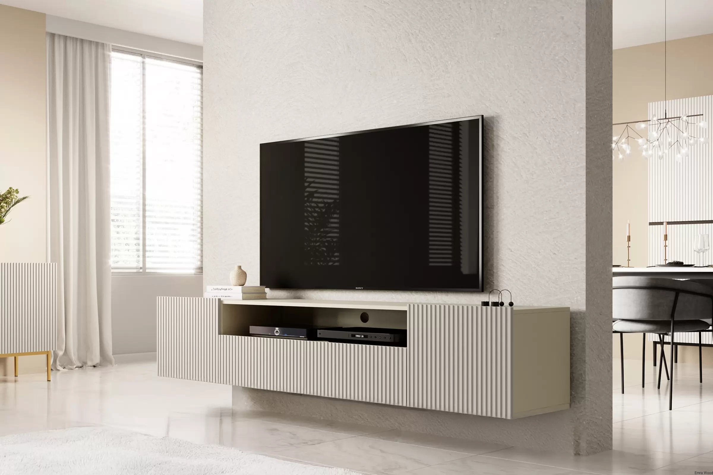 Czy zastanawiałeś się kiedyś, jakie meble RTV mogą odmienić wygląd Twojego salonu i uczynić go wyjątkowym? Nasza wisząca szafka RTV Nicole z wnęką i szufladami, o szerokości 200 cm, w kolorze kaszmiru, to wszystko, czego potrzebujesz, aby nadać swojemu wnętrzu wyjątkowego stylu.