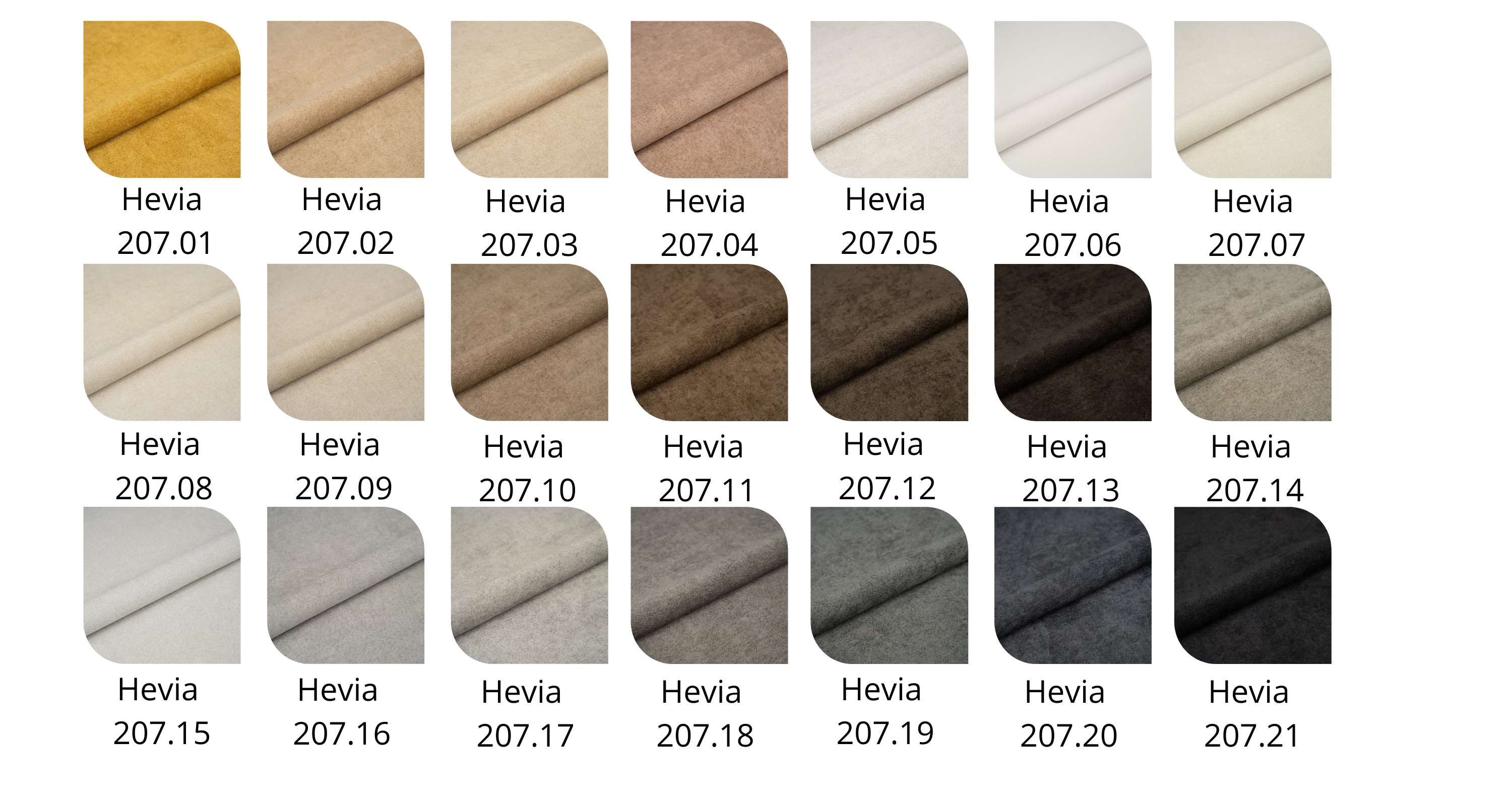 Kolekcja HEVIA to klasyczna propozycja na obicie mebla. Tkanina HEVIA to prawdziwy majstersztyk wśród tkanin, zarówno jeżeli chodzi o estetykę, jak i funkcjonalność. Drobna plecionka przeplatana w dwóch kolorach znajdzie zastosowanie na każdym meblu. 28 wariantów kolorystycznych pozwala na dopasowanie jej do każdego stylu i wnętrza. Jest nie tylko praktycznym wyborem, ale także doskonałą dekoracją, która podkreśli unikalność każdego wnętrza. Kolekcja HEVIA posiada technologię PETPROOF, czyli podwyższoną odporność na zaciąganie nitek, co szczególnie spodoba się właścicielom czworonogów. Warto również zaznaczyć, ze tkanina posiada odporność na zapłon, którego źródłem jest papieros. Plecionka nie tylko dodaje głębi i charakteru każdemu meblowi, na których ją zastosujesz, ale tworzy harmonijną kompozycję, która pasuje do różnych stylów aranżacyjnych.
