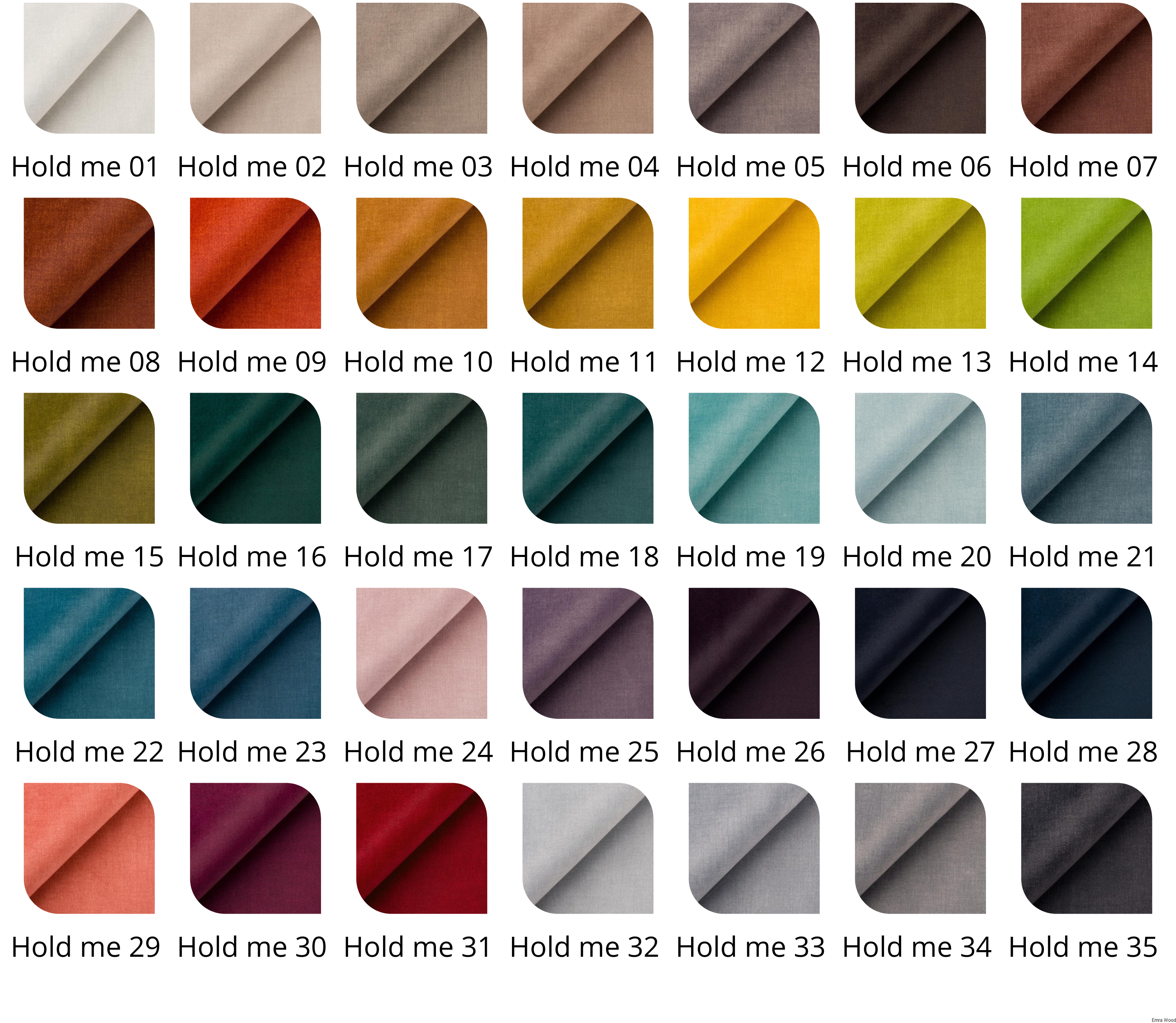 W kolekcji Hold Me znaleźć można 35 intensywnych, mocnych kolorów. Pełen przekrój barw pozwala z łatwością dopasować tkaninę do nowoczesnych trendów i własnych preferencji. Duży atut to dobra odporność kolorów na wybarwienie, przez co mogą one cieszyć swoją intensywnością przez dłuższy czas. Kolor Hold Me 02 Sandshell to jasny odcień beżu.