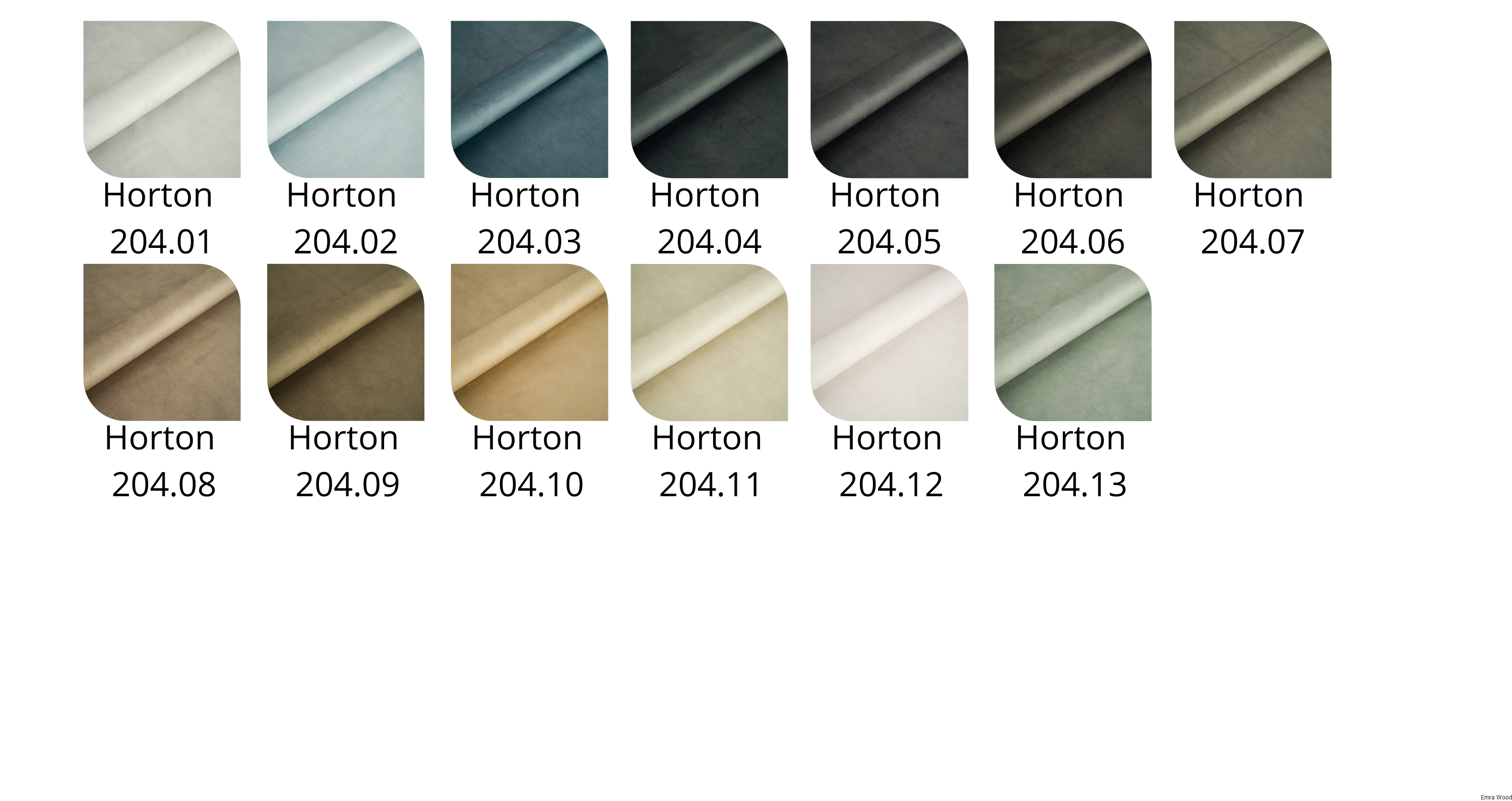 13 wyjątkowych kolorów kolekcji Horton zostało utrzymane w tonacjach beżu, brązu, szarości i błękitu. Wygląd tkaniny imituje skórę naturalną.