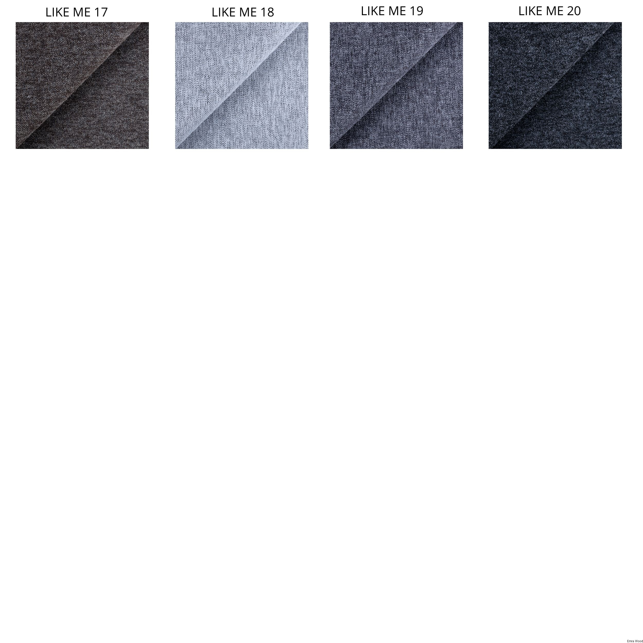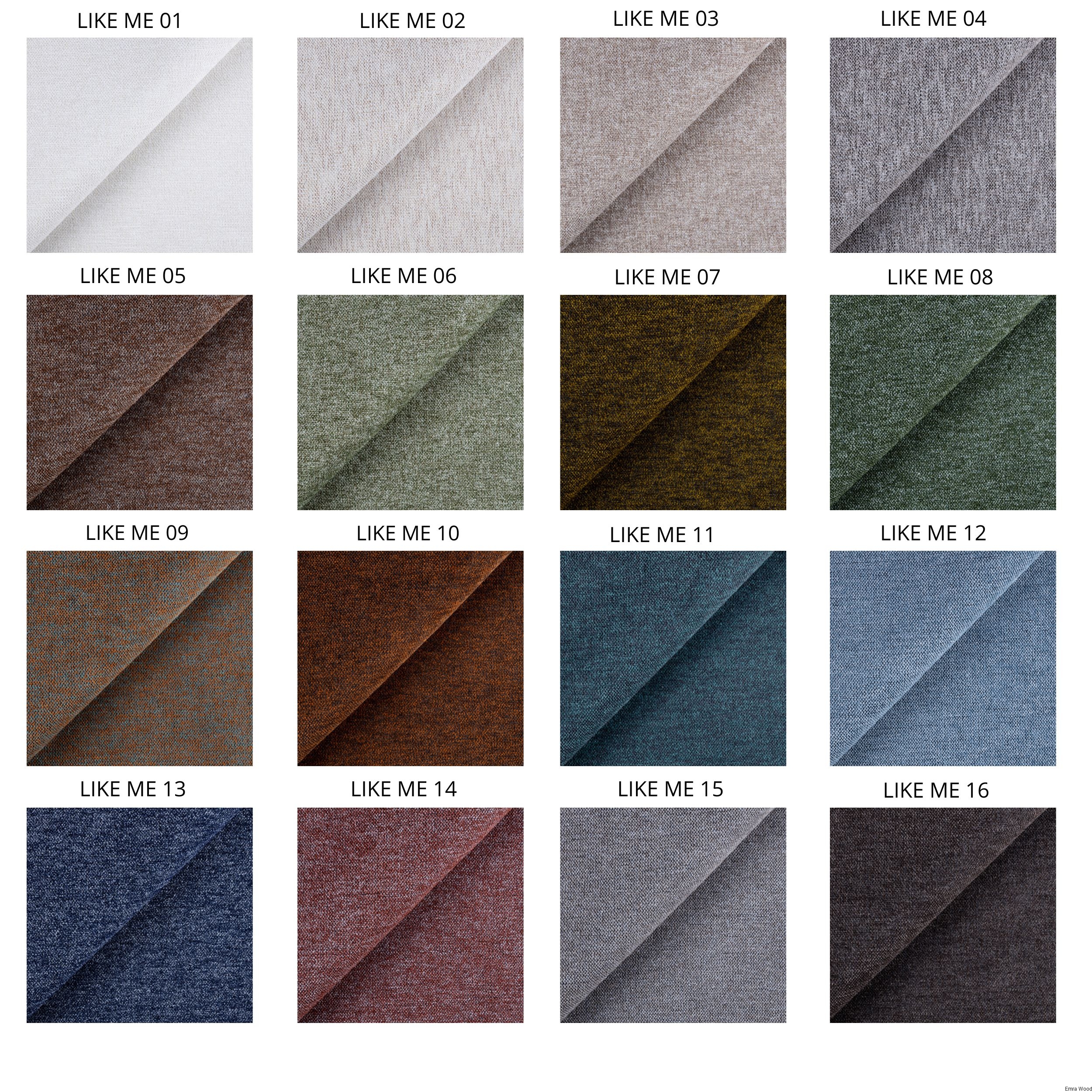Tkanina Like Me to materiał, który łączy w sobie stylowy wygląd, trwałość i komfort użytkowania. Jej piękne odcienie wprowadzą do wnętrza wrażenie lekkości i łagodności. W dotyku jest przyjemnie zwarta, a jej subtelna struktura daje odczucie uporządkowanej miękkości.