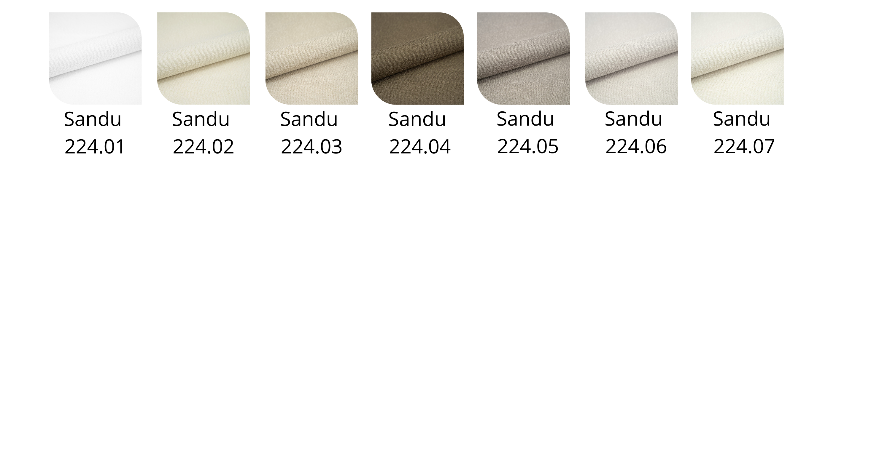 Kolekcja SANDU to wyrafinowana, delikatna bukla która zachwyca subtelnością struktury i elegancją naturalnych odcieni. Dostępna w siedmiu starannie dobranych wariantach kolorystycznych - od beży, szarości i brązy. Doskonale więc wpisuje się w aktualne trendy wnętrzarskie, podkreślając charakter zarówno nowoczesnych, jak i klasycznych aranżacji. Miękka w dotyku, a jednocześnie wyjątkowo wytrzymała tkanina SANDU świetnie sprawdzi się na meblach tapicerowanych, poduszkach, czy dekoracjach tekstylnych, wprowadzając do przestrzeni przytulność, jak i ponadczasowy styl. Lekko nieregularna powierzchnia dodaje głębi i dynamiki, tworząc efekt subtelnego, naturalnego piękna. Kolekcja SANDU to idealny wybór dla tych, którzy cenią sobie połączenie jakości, komfortu, i wysmakowanej estetyki.
