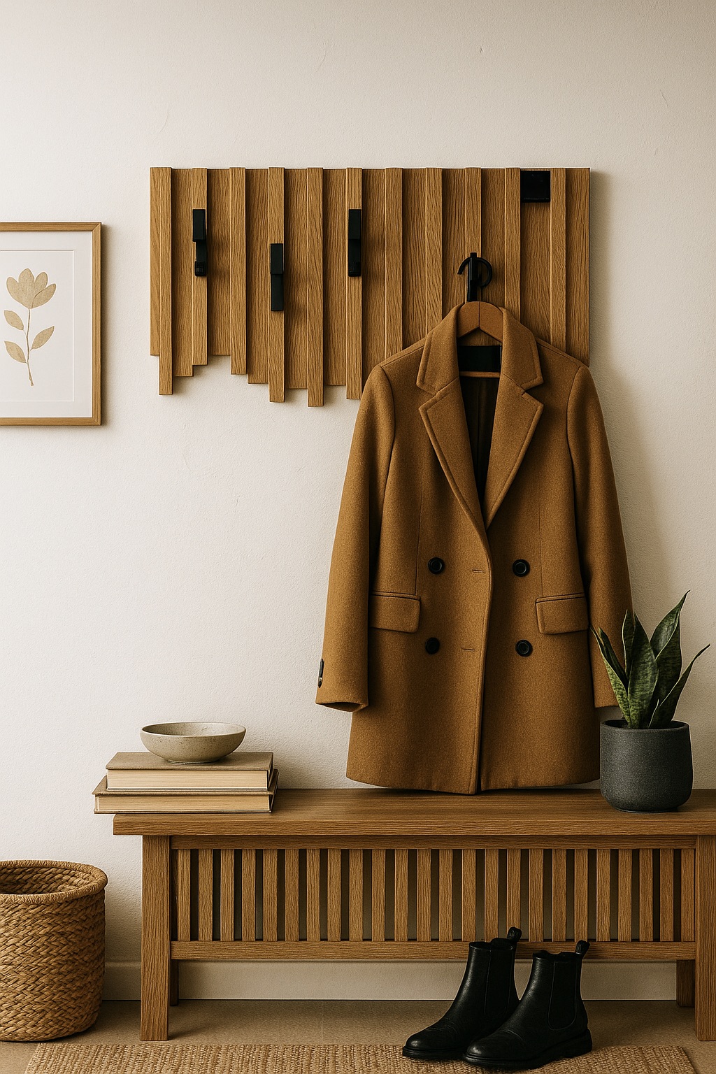 • Drewniany i funkcjonalny wieszak ścienny do przedpokoju , poczekalni , holu wykonany z drewna litego olchowego