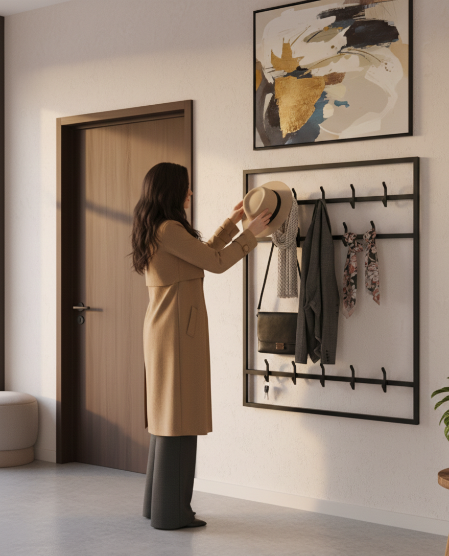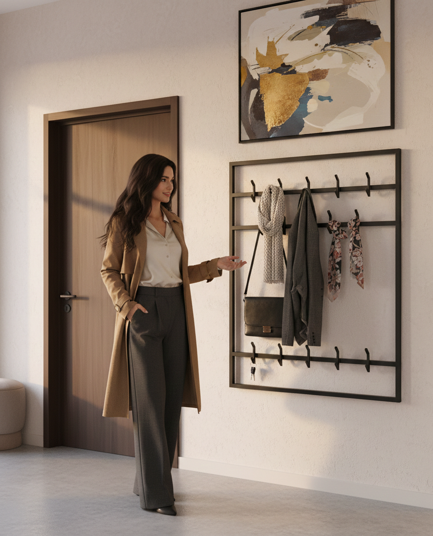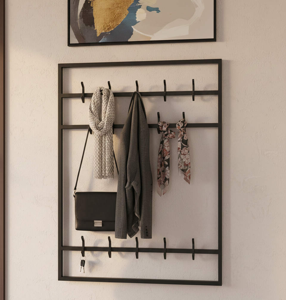 Wieszak ścienny WM-16 wykonany z trwałego, wysokiej jakości metalu malowanego proszkowo,  łączy w sobie nowoczesny design i solidność. Idealny do każdego wnętrza – od minimalistycznych po industrialne.
