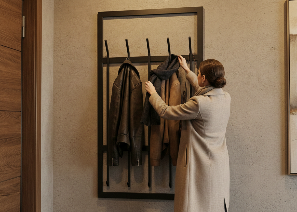 Wieszak ścienny WM-2 wykonany z trwałego, wysokiej jakości metalu malowanego proszkowo,  łączy w sobie nowoczesny design i solidność. Idealny do każdego wnętrza – od minimalistycznych po industrialne.