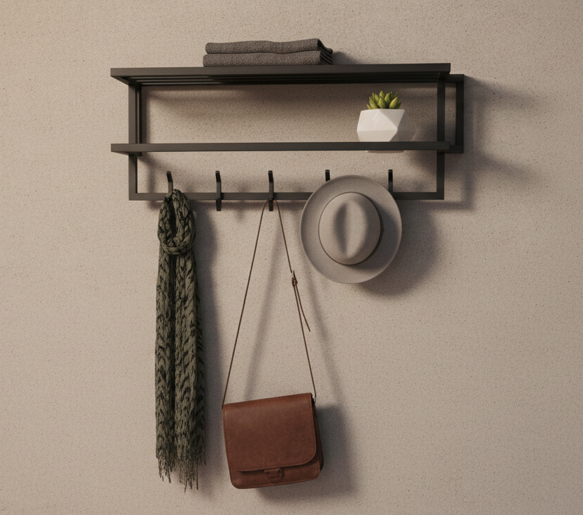 Wieszak ścienny WM-9 wykonany z trwałego, wysokiej jakości metalu malowanego proszkowo,  łączy w sobie nowoczesny design i solidność. Idealny do każdego wnętrza – od minimalistycznych po industrialne.
