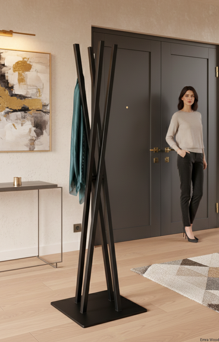 Wieszak WSM-5 wykonany jest z metalu malowanego proszkowo na wybrany kolor. Stojący wieszak o takiej stylistyce to propozycja do niemalże każdego przedpokoju i korytarza, która pozwoli zapanować nad ładem i porządkiem
