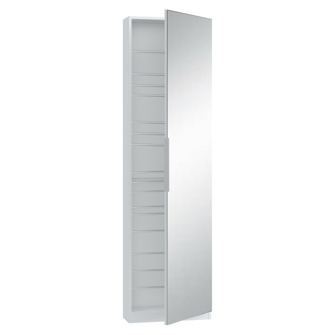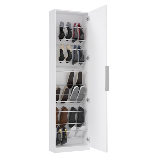 Szafka na buty z lustrem w Białym dekorze to idealny mebel do każdego stylowego przedpokoju. Mebel pomieści spore ilości obuwia oraz ułatwi jego wybór przed każdym wyjściem.
