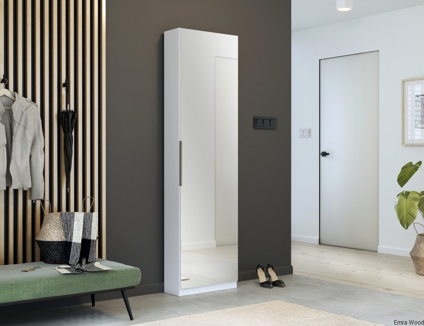 Szafka na buty z lustrem w Białym dekorze to idealny mebel do każdego stylowego przedpokoju. Mebel pomieści spore ilości obuwia oraz ułatwi jego wybór przed każdym wyjściem.