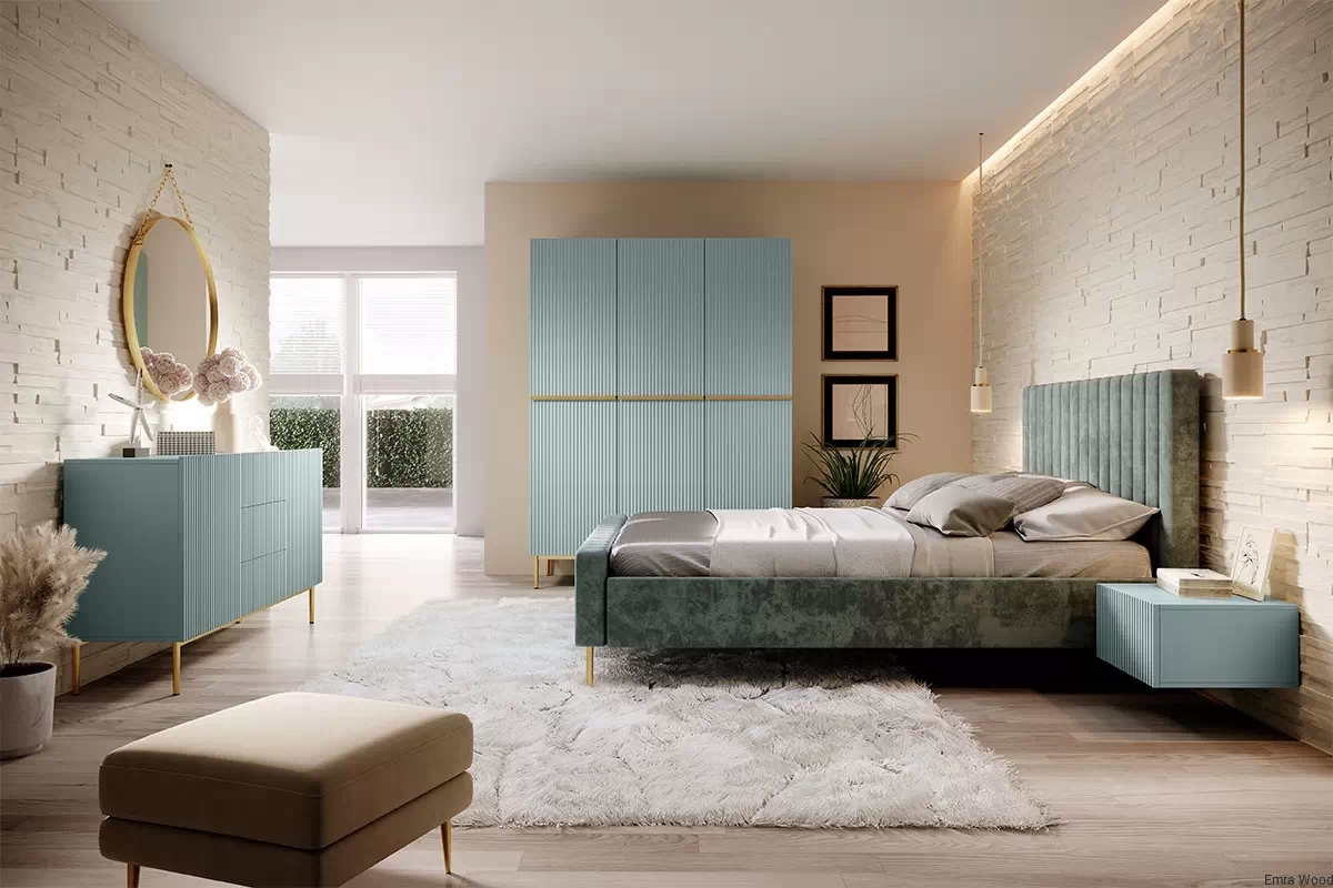Pierwsze, co rzuca się w oczy, to unikalna kolorystyka. Matowy odcień szałwii, połączony z fjordem, dodaje szafkom subtelnego uroku. Ten wyjątkowy duet kolorystyczny sprawi, że Twoja sypialnia zyska niepowtarzalny charakter.