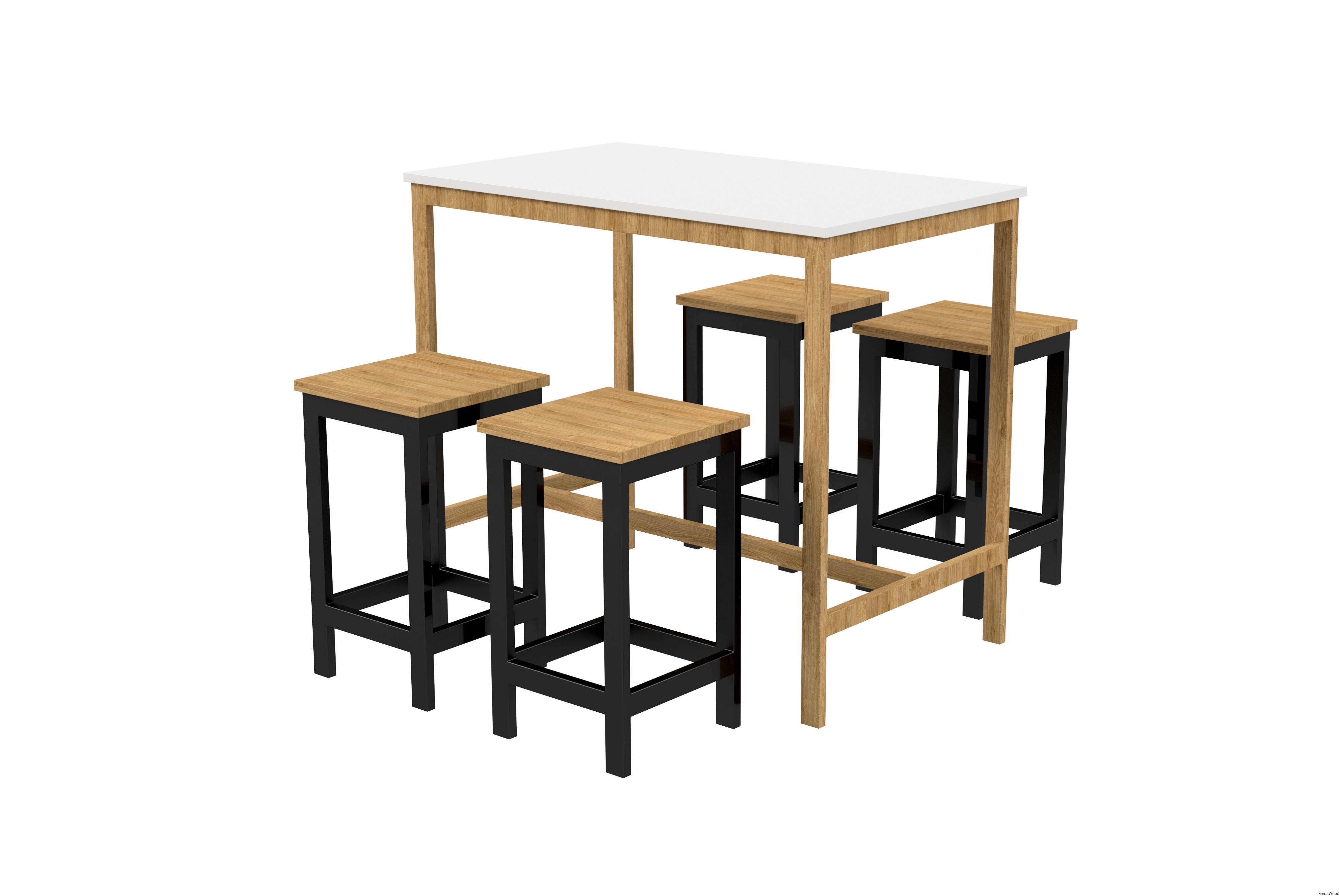 Zestaw Barowo - Jadalniany Nogi z Drewna Litego Dębowego , Blat Biały Płyta MDF Stół + 4 Taborety Model  ZETS-8