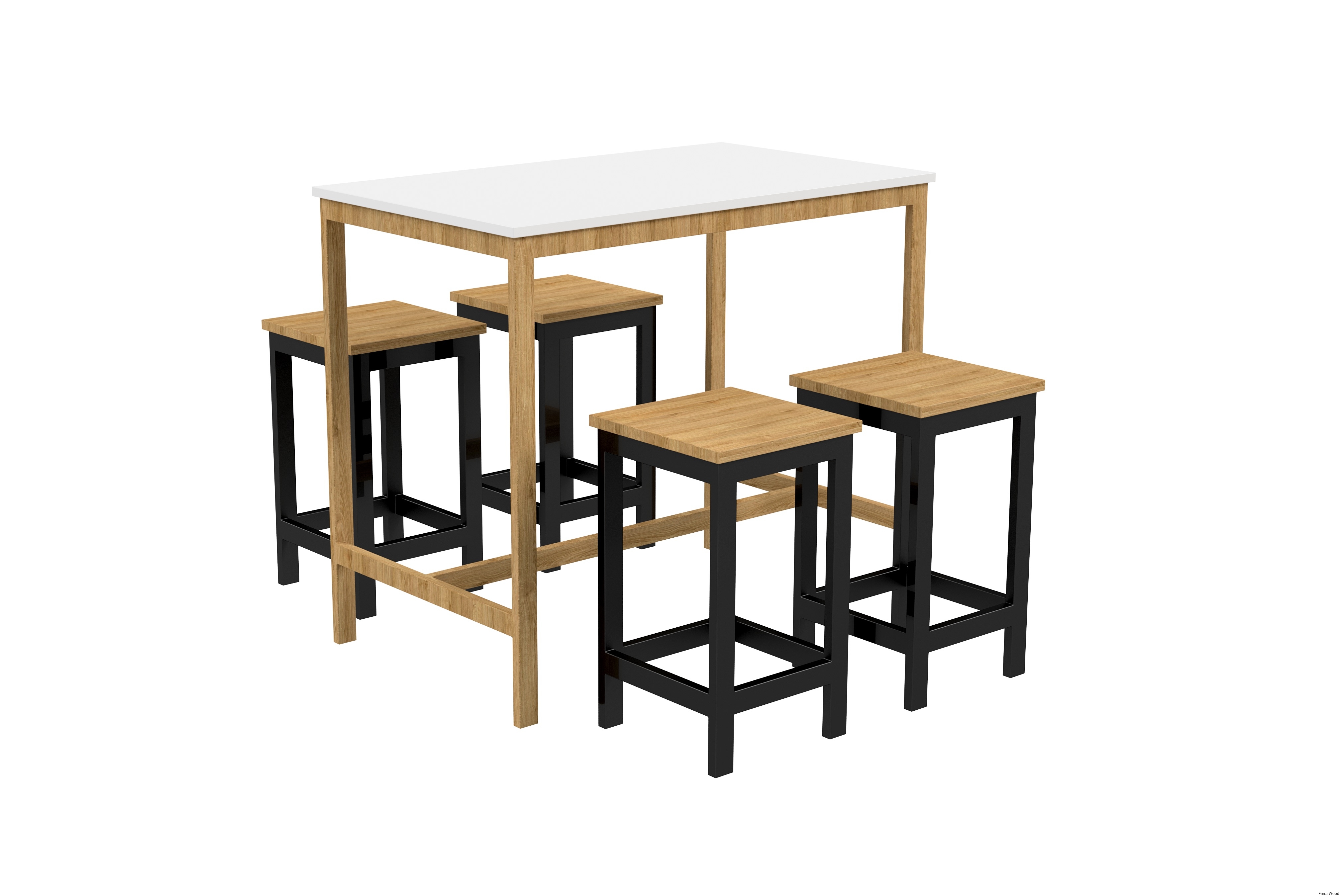 Zestaw Barowo - Jadalniany Nogi z Drewna Litego Dębowego, Blat Biały Płyta MDF Stół + 4 Taborety Model  ZETS-6