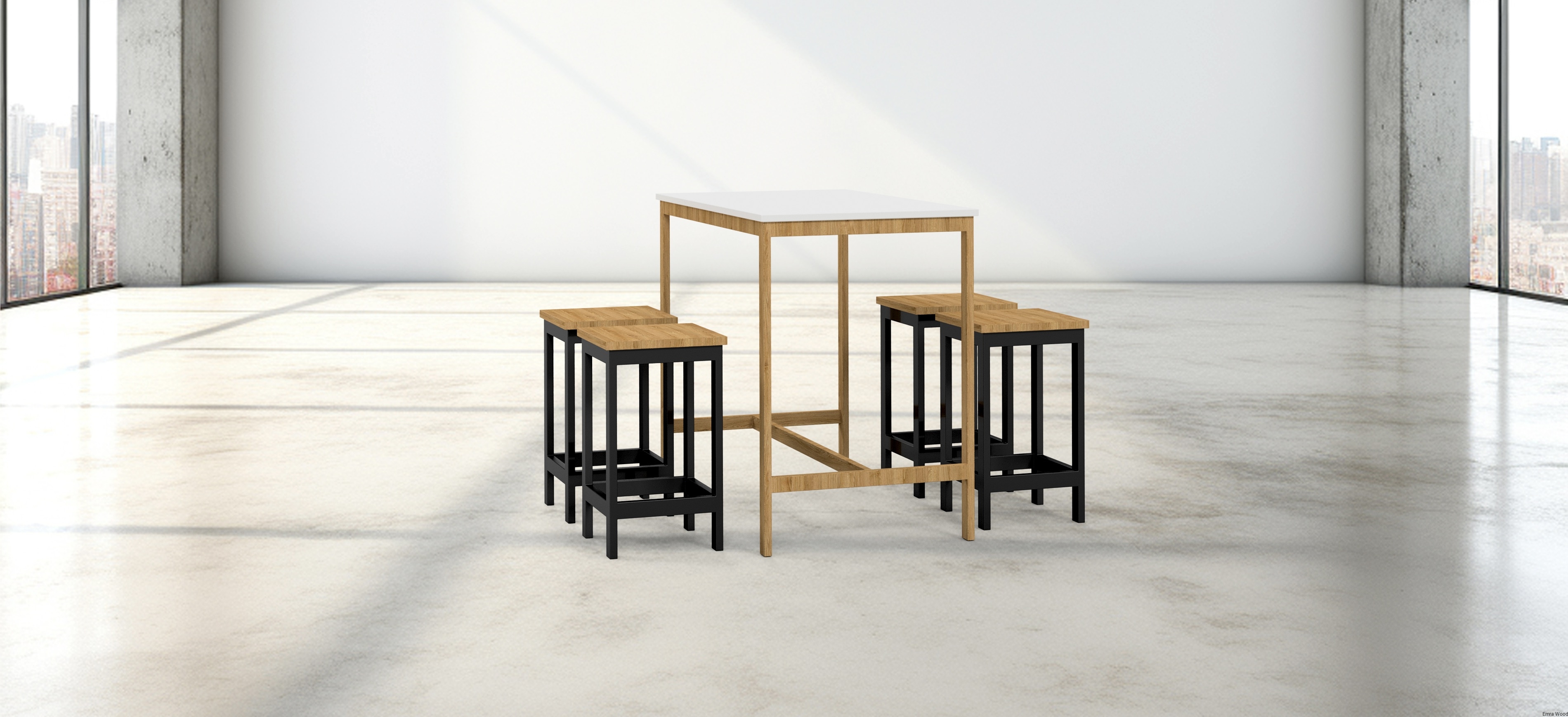 Zestaw jadalniany ZETS 6 składający się ze stołu barowego i czterech hokerów to wyjątkowa propozycja, łącząca naturalne piękno drewna z praktycznością i wytrzymałością metalu .