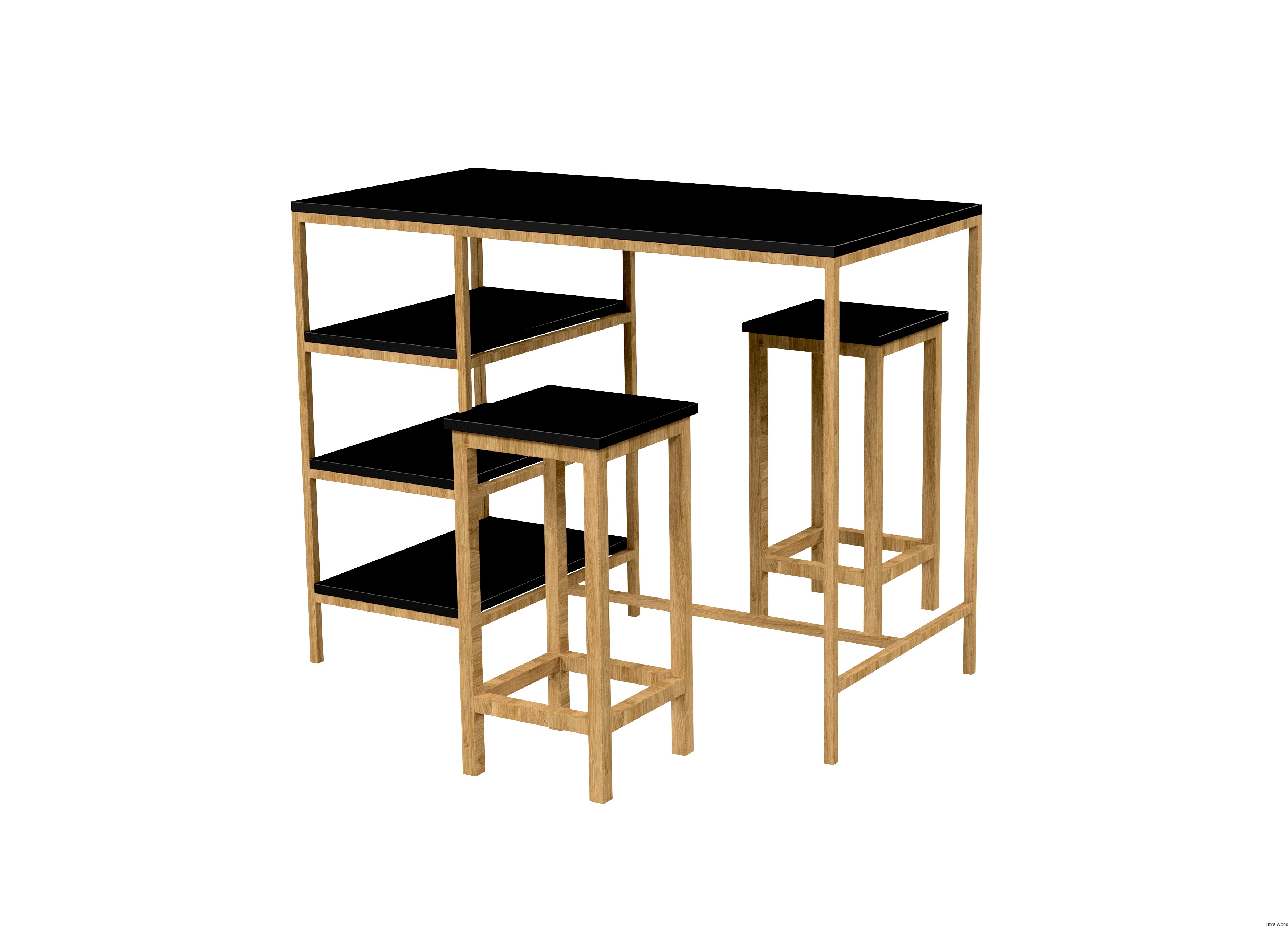 Zestaw Barowo Jadalniany Nogi z Drewna Litego Dębowego , Blat Czarny Płyta MDF  Stół +2 Taborety Model  ZETS-30