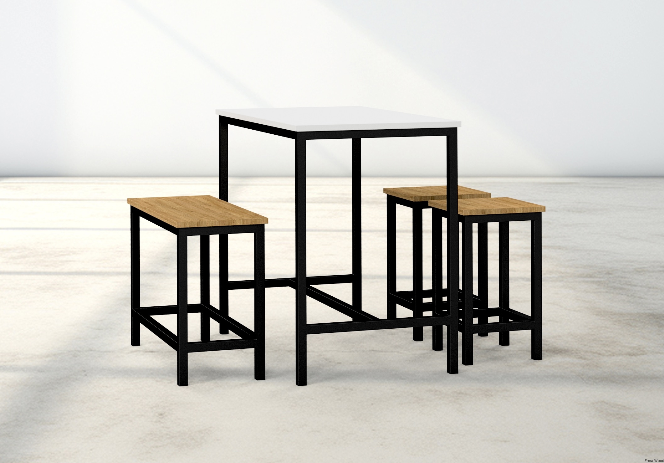 Zestaw Barowo -Jadalniany z Metalu i Drewna Litego Dębowego  Stół + 2 Taborety Model ZETS-20