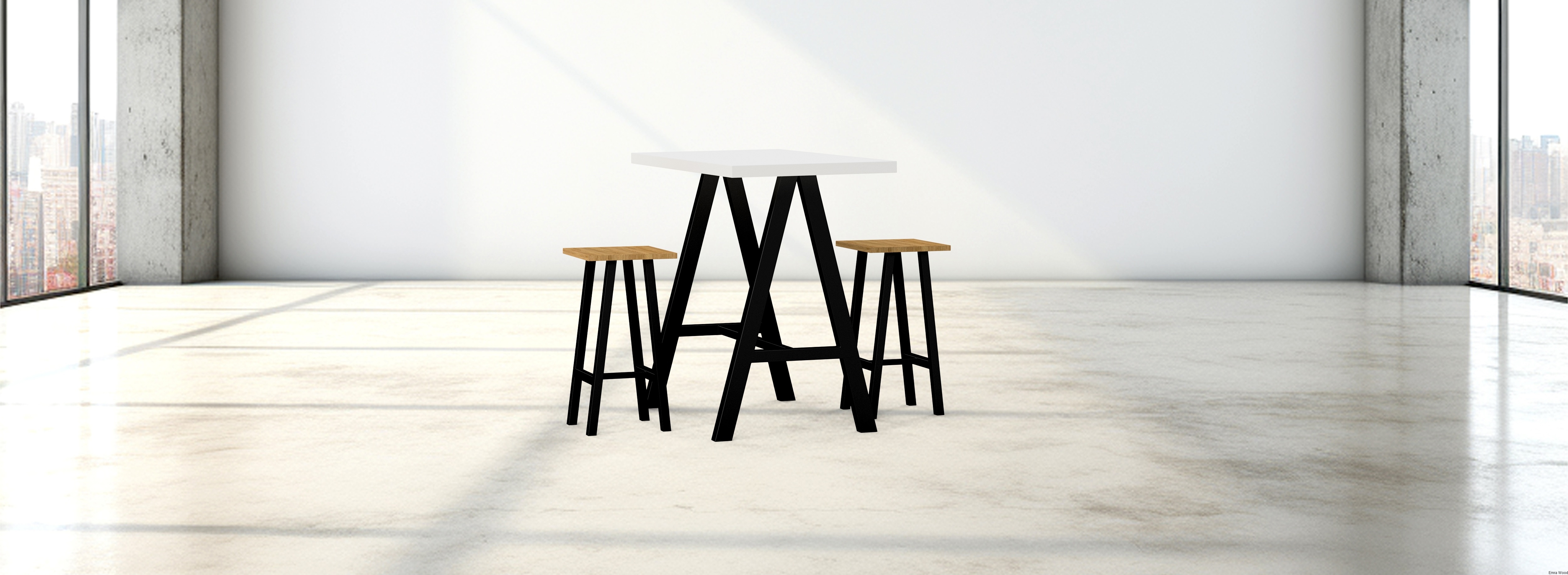 Zestaw Barowo -Jadalniany z Metalu i Drewna Litego Dębowego  Stół + 2 Taborety Model ZETS-31