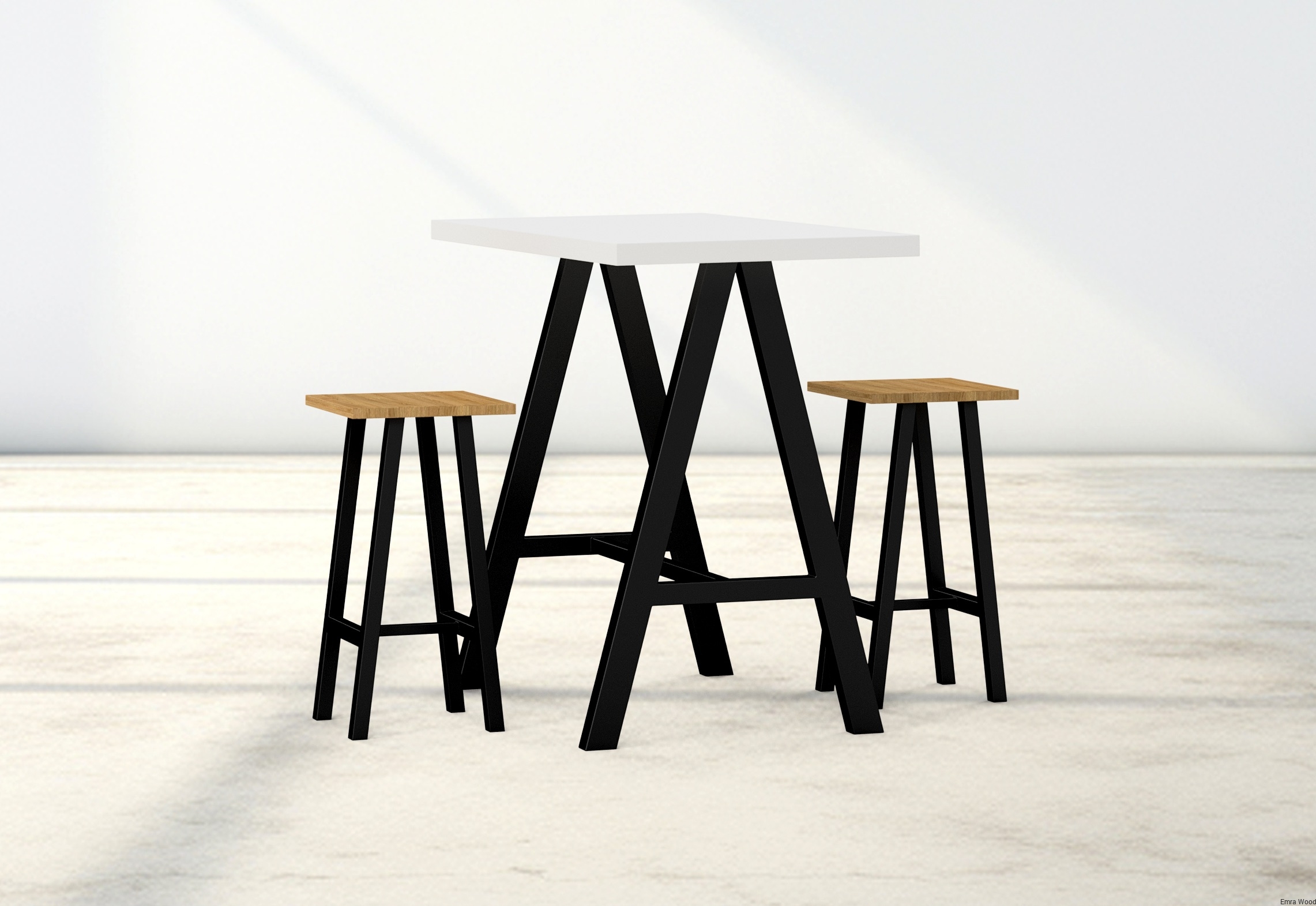Zestaw Barowo -Jadalniany z Metalu i Drewna Litego Dębowego  Stół + 2 Taborety Model ZETS-20