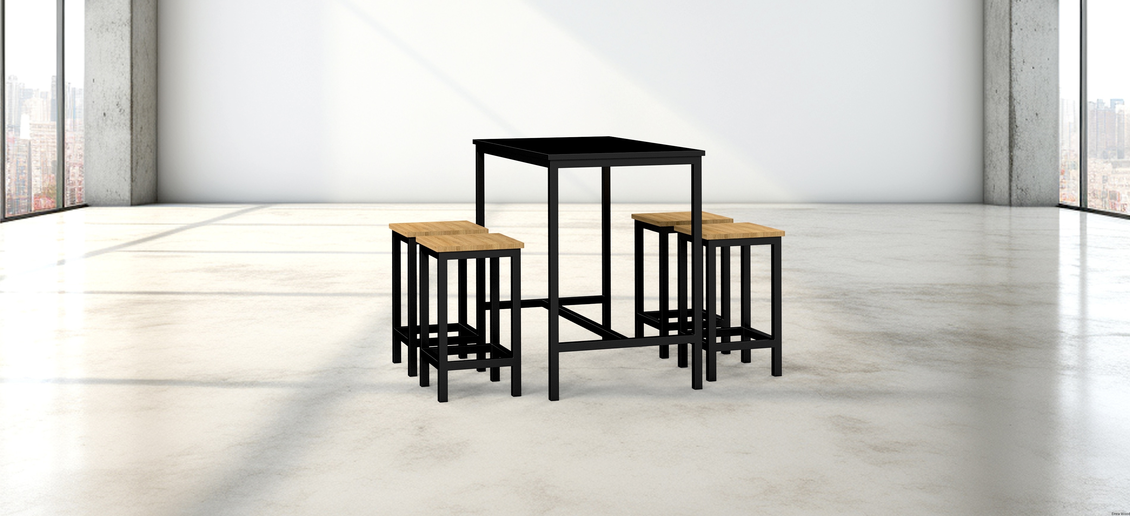 Zestaw Barowo - Jadalniany z Metalu , Blat Czarny Płyta MDF  Stół +4 Taborety Model  ZETS-5