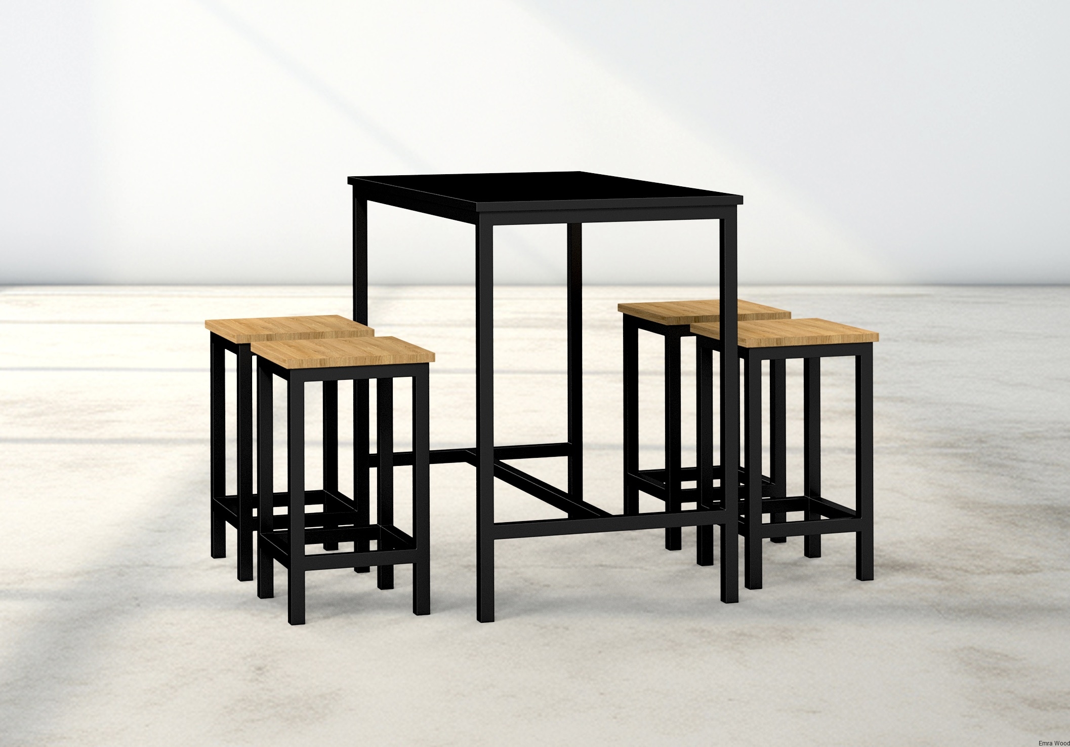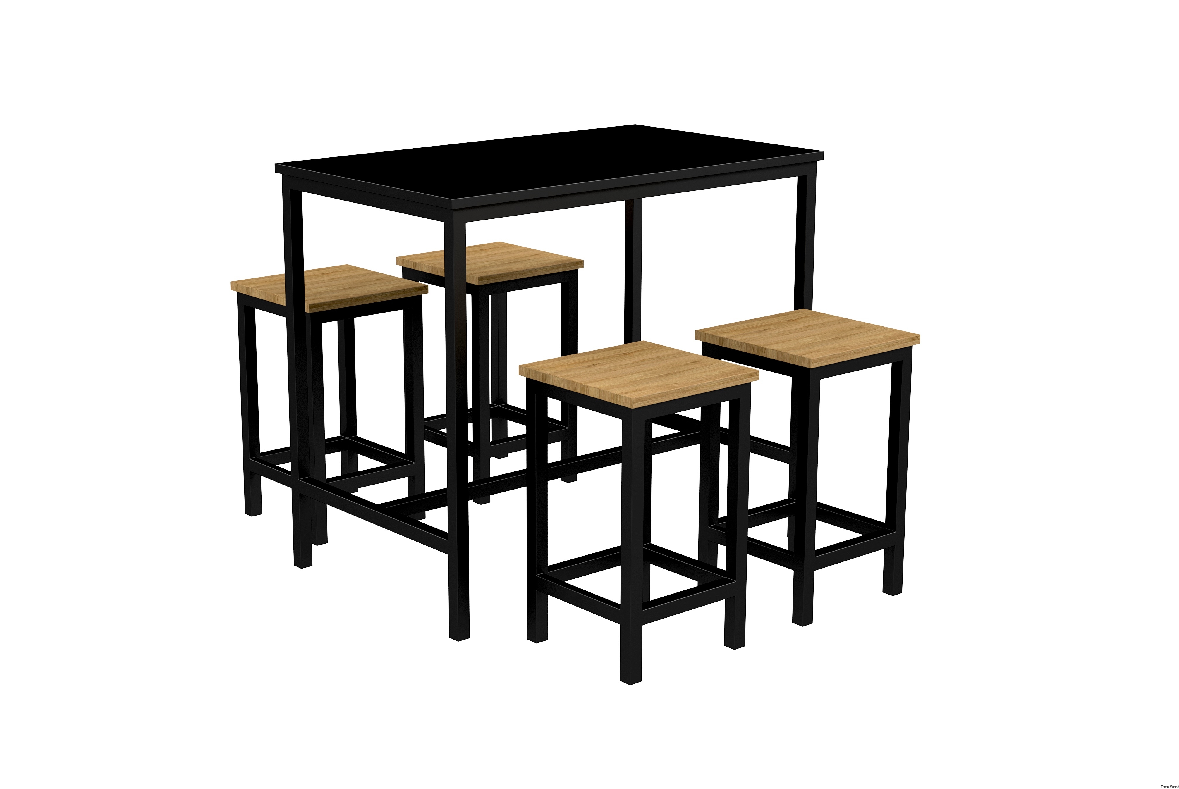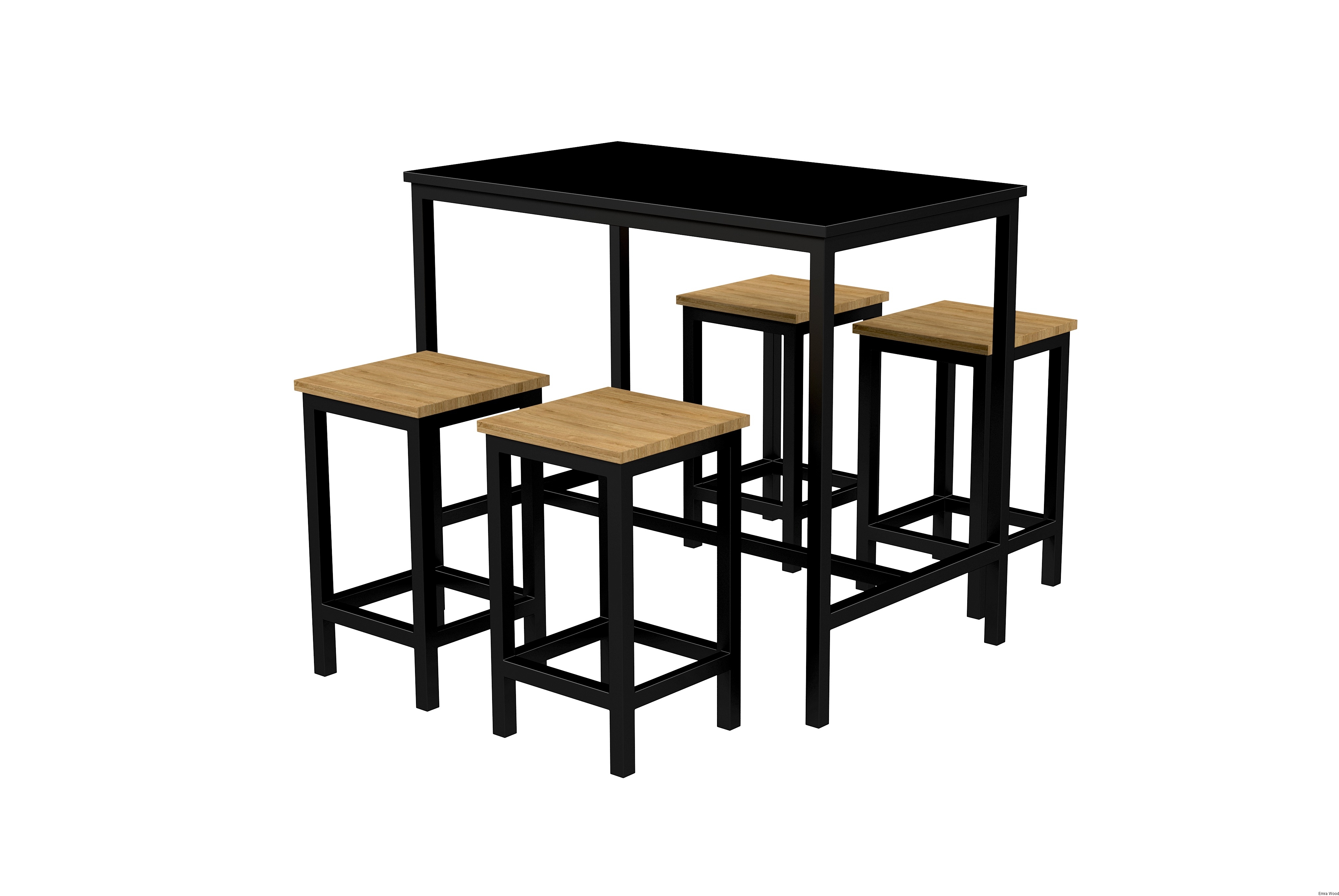 Zestaw Barowo Jadalniany Nogi z Drewna Litego Dębowego, Blat Czarny Płyta MDF Stół + 4 Taborety Model  ZETS-7