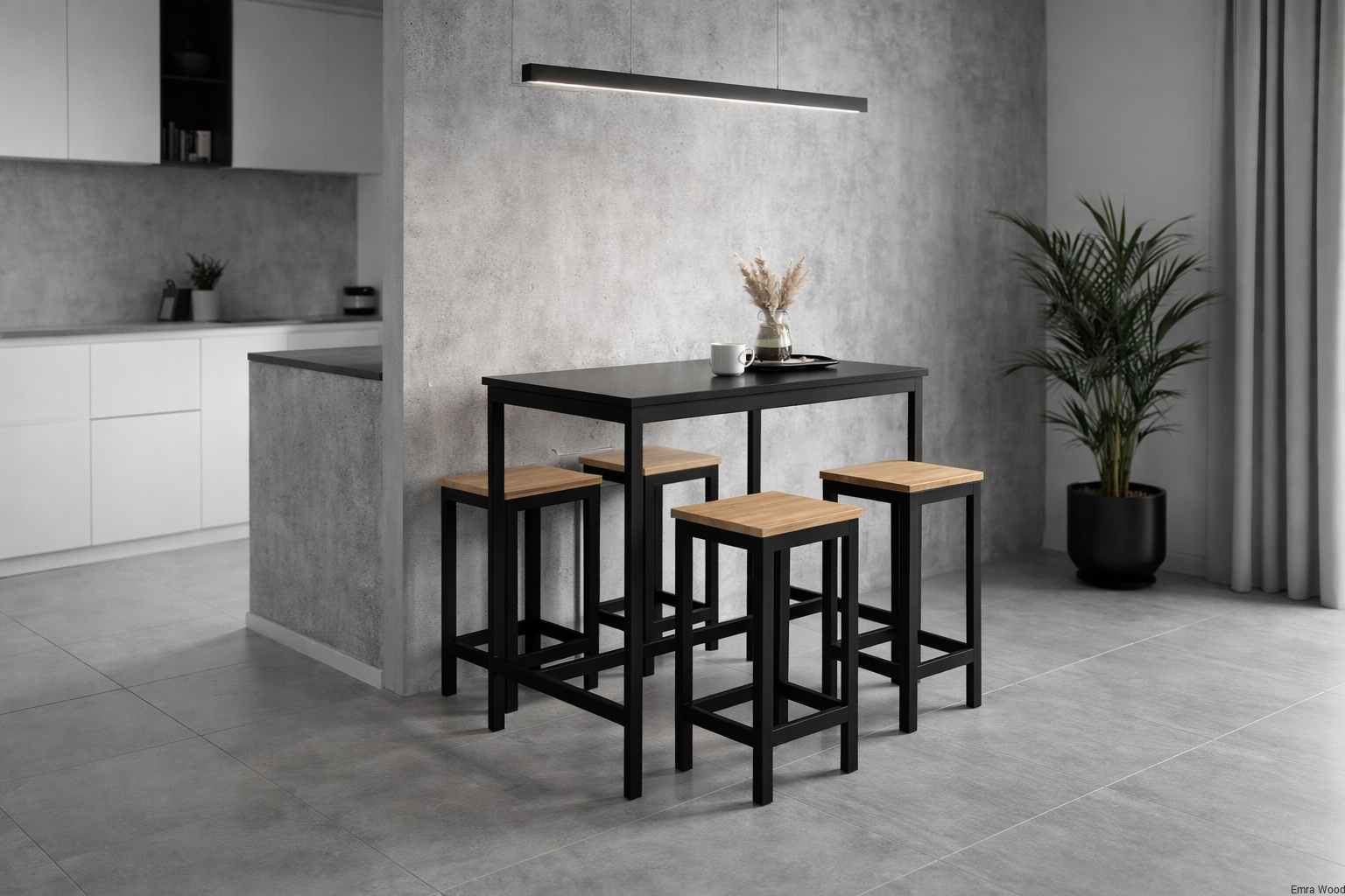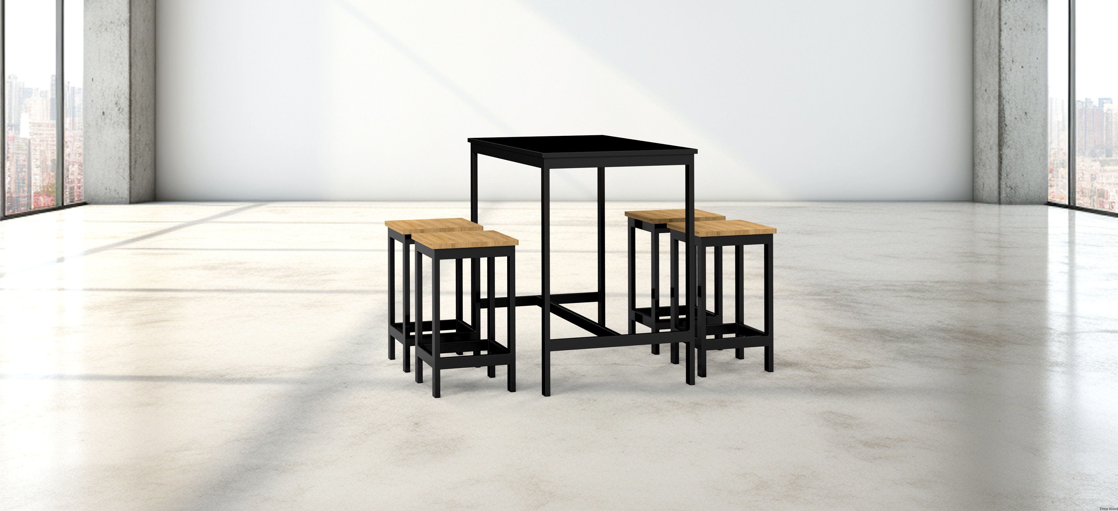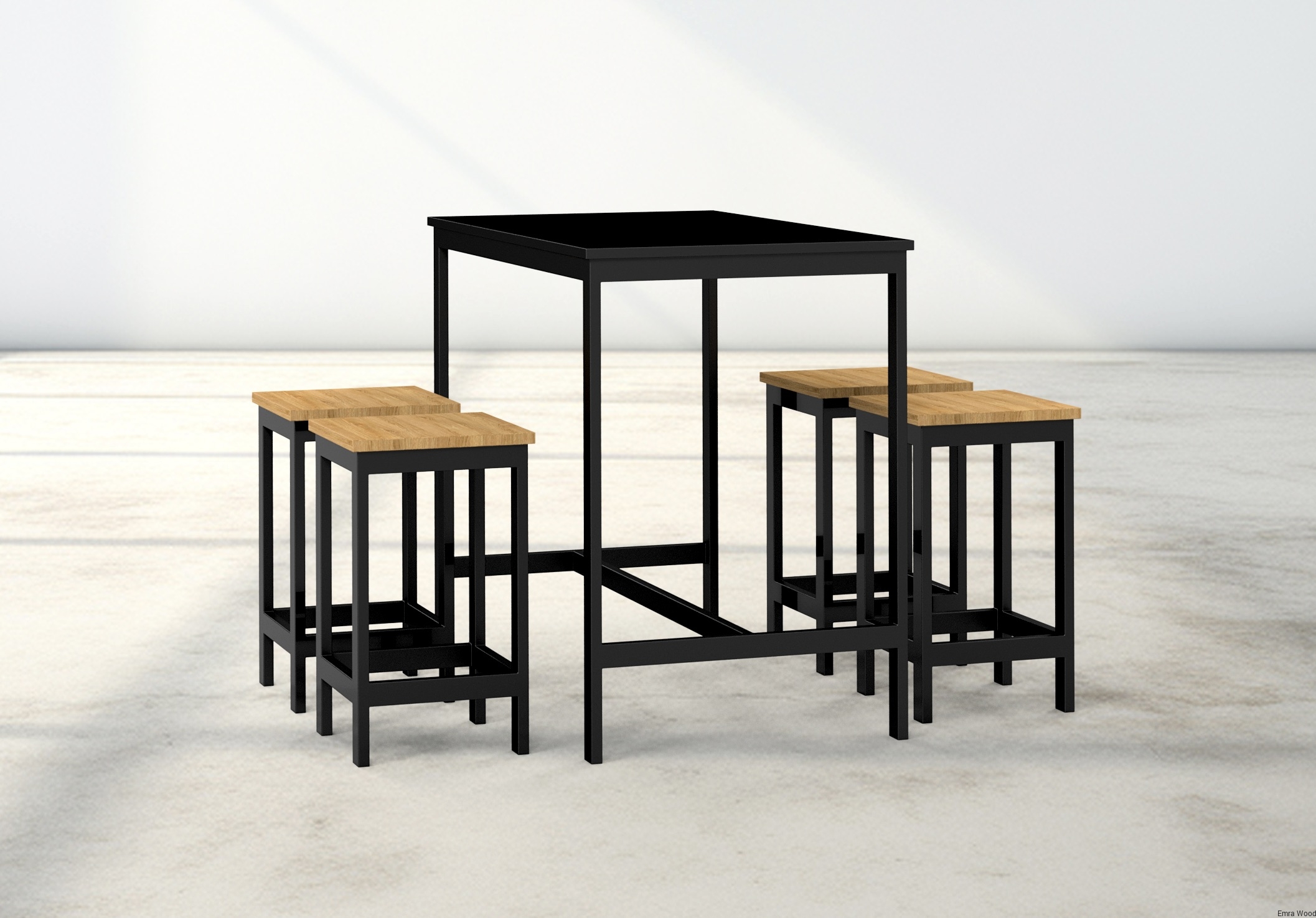 Zestaw Barowo - Jadalniany z Metalu , Blat Czarny Płyta MDF  Stół +4 Taborety Model  ZETS-18