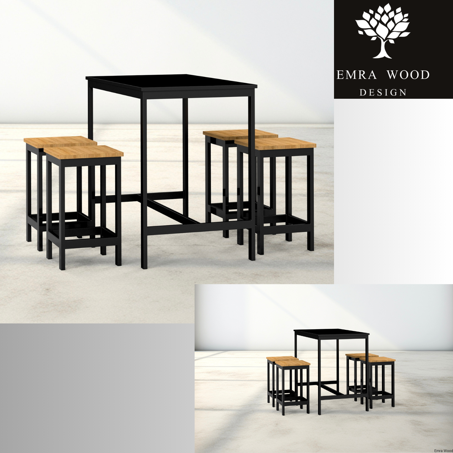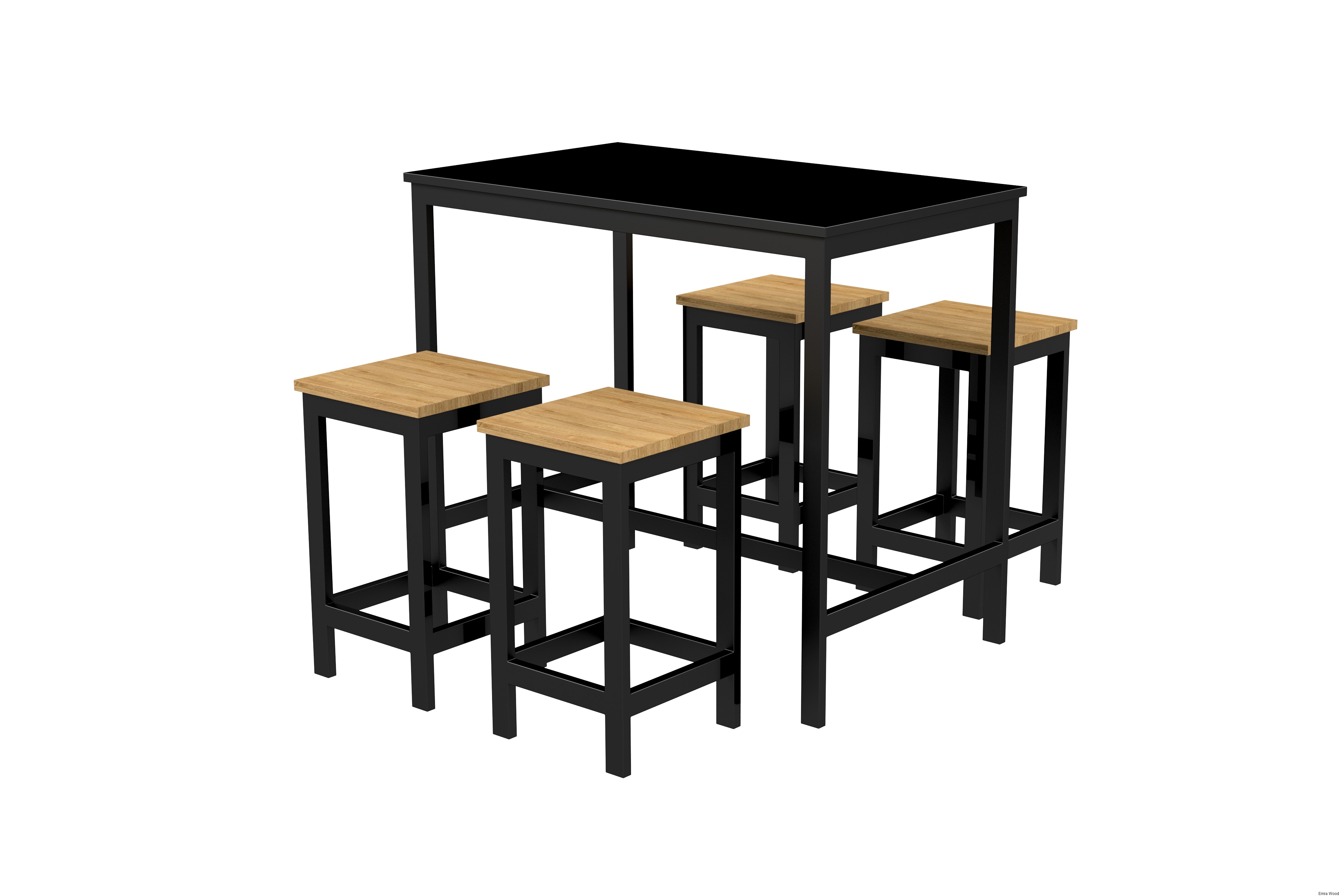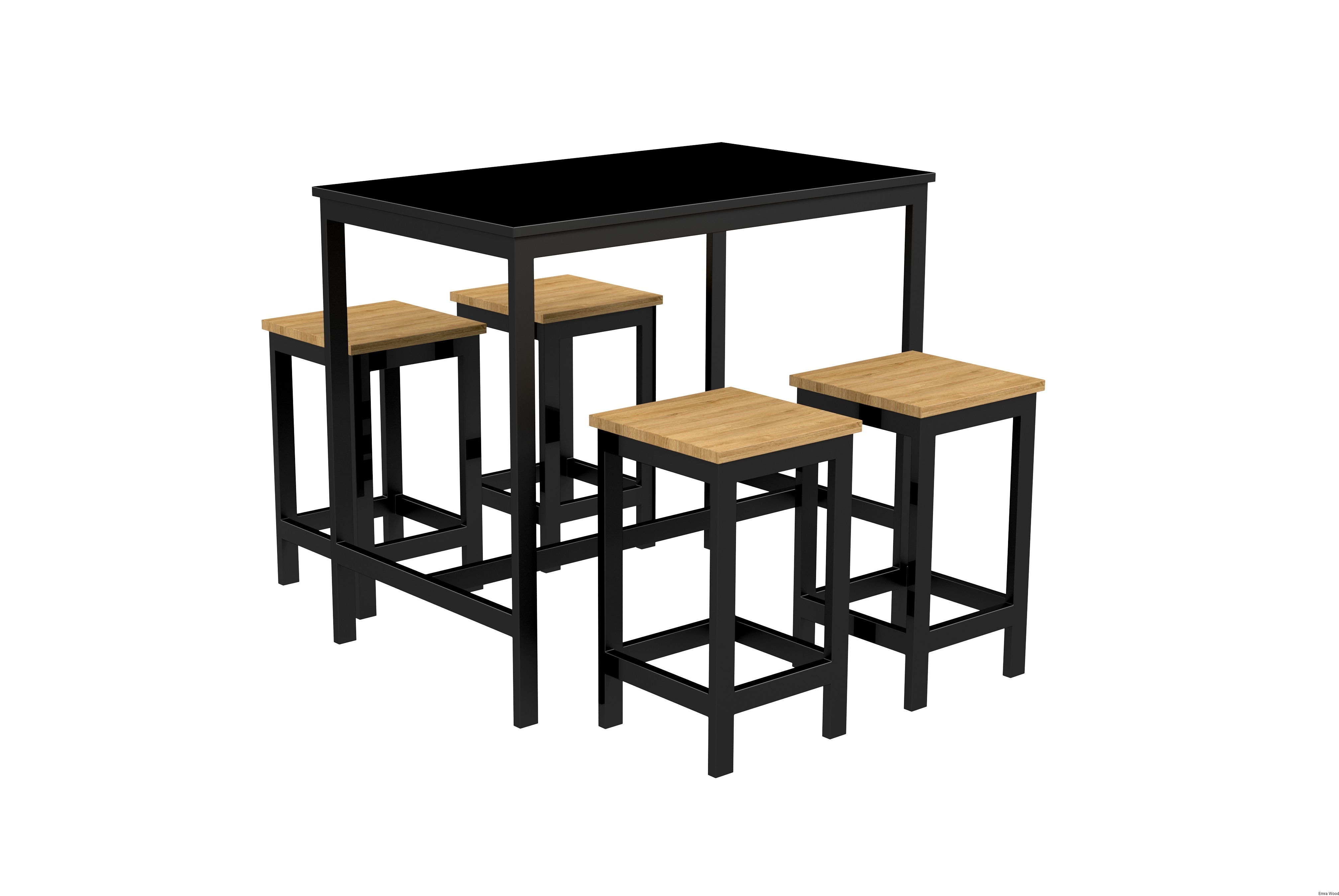 Zestaw Barowo Jadalniany Nogi z Drewna Litego Dębowego, Blat Czarny Płyta MDF Stół + 4 Taborety Model  ZETS-7
