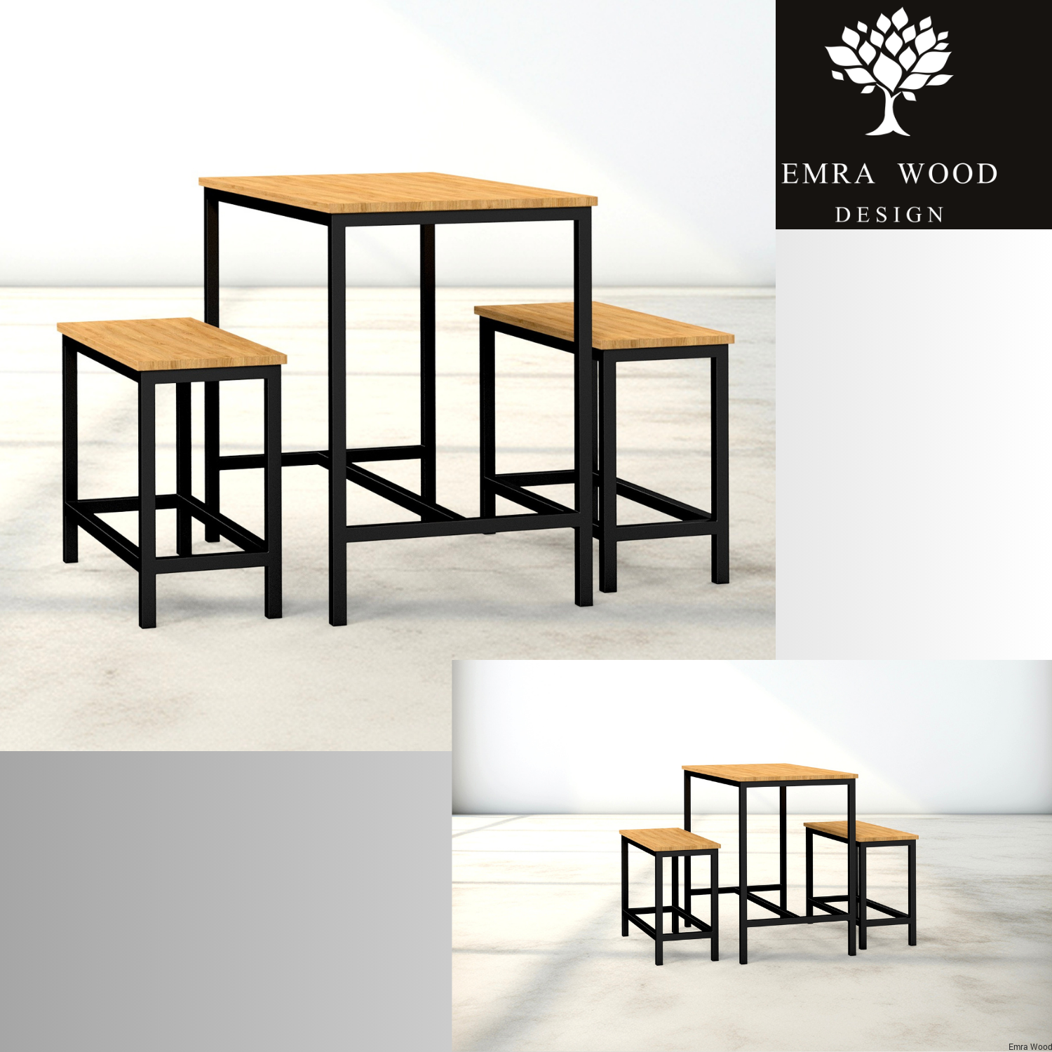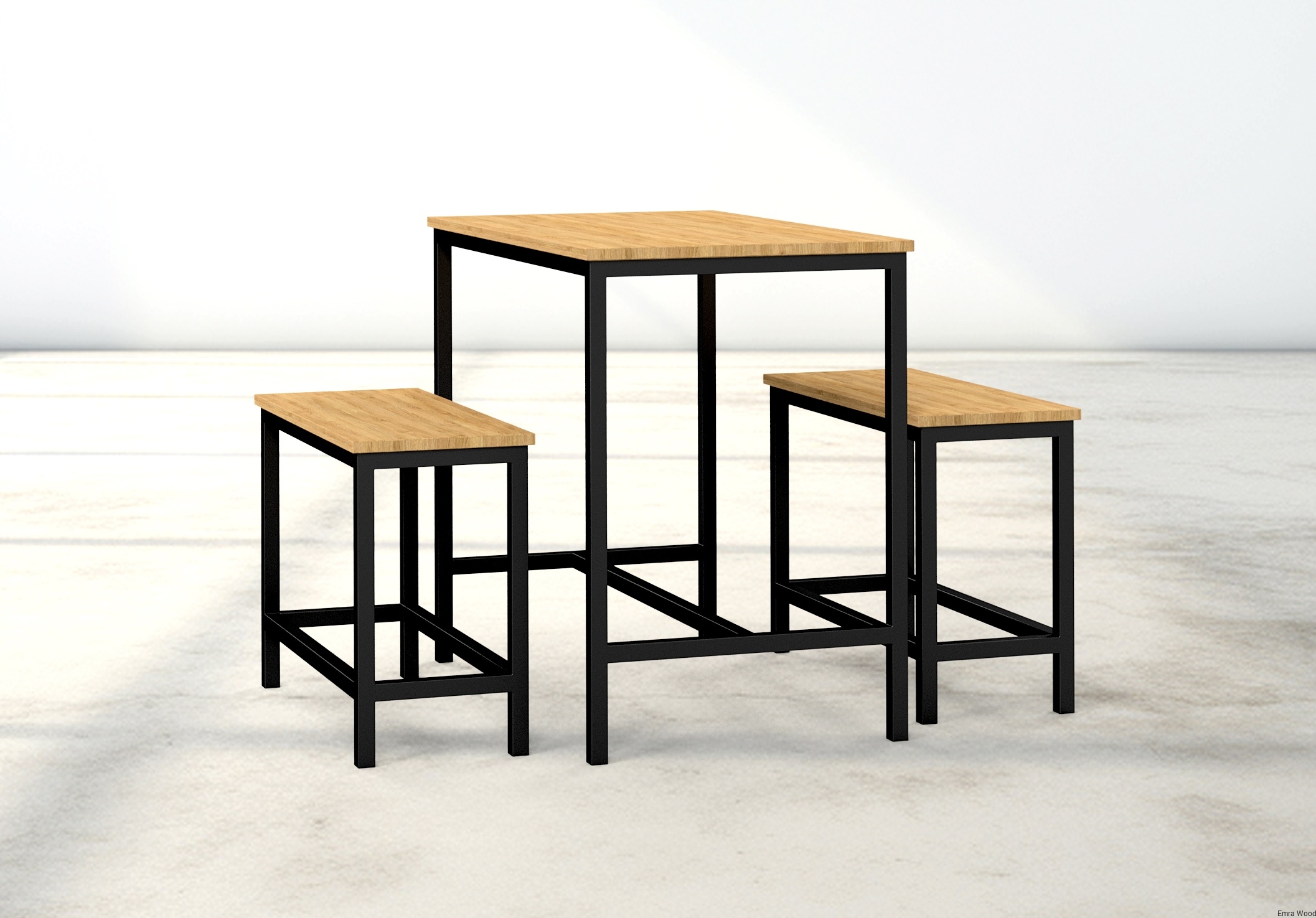 Zestaw Barowo -Jadalniany z Metalu i Drewna Litego Dębowego  Stół + 2 Taborety Model ZETS-20