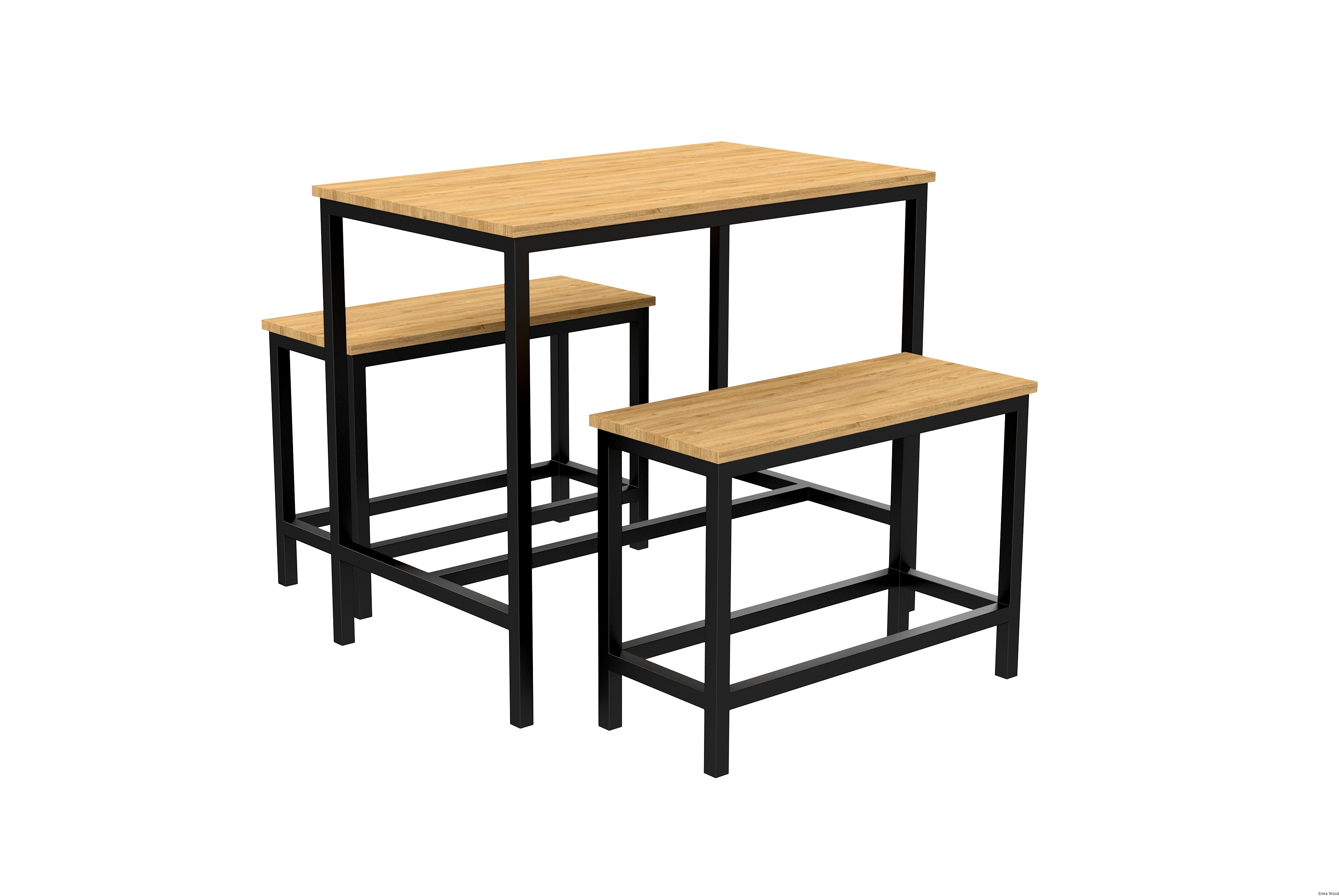 Strona główna » Jadalnia i Kuchnia » Zestaw Barowo - Jadalniany z Metalu , Blat Drewno Lite Dębowe Stół +2 Ławki Model ZETS-12