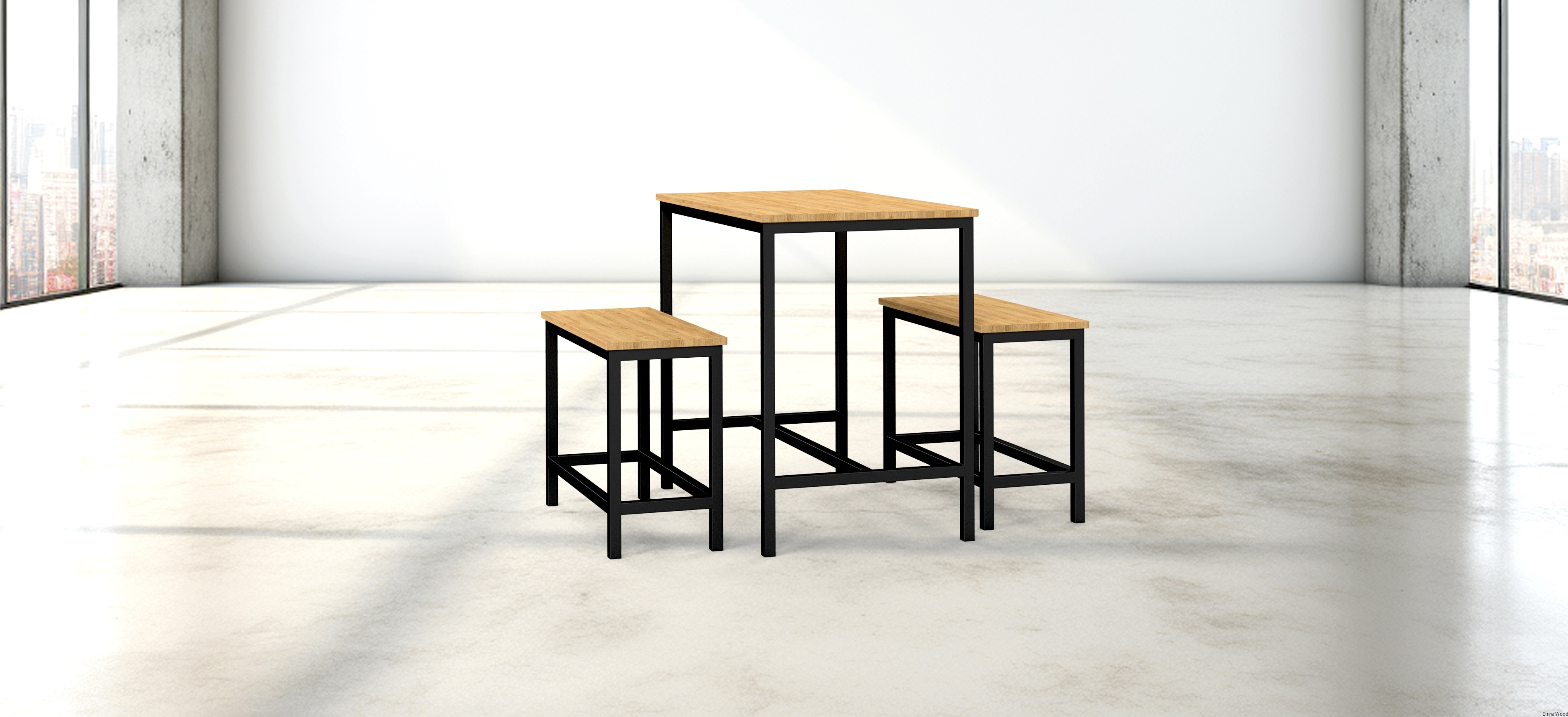Zestaw Barowo -Jadalniany z Metalu i Drewna Litego Dębowego  Stół + 2 Taborety Model ZETS-23