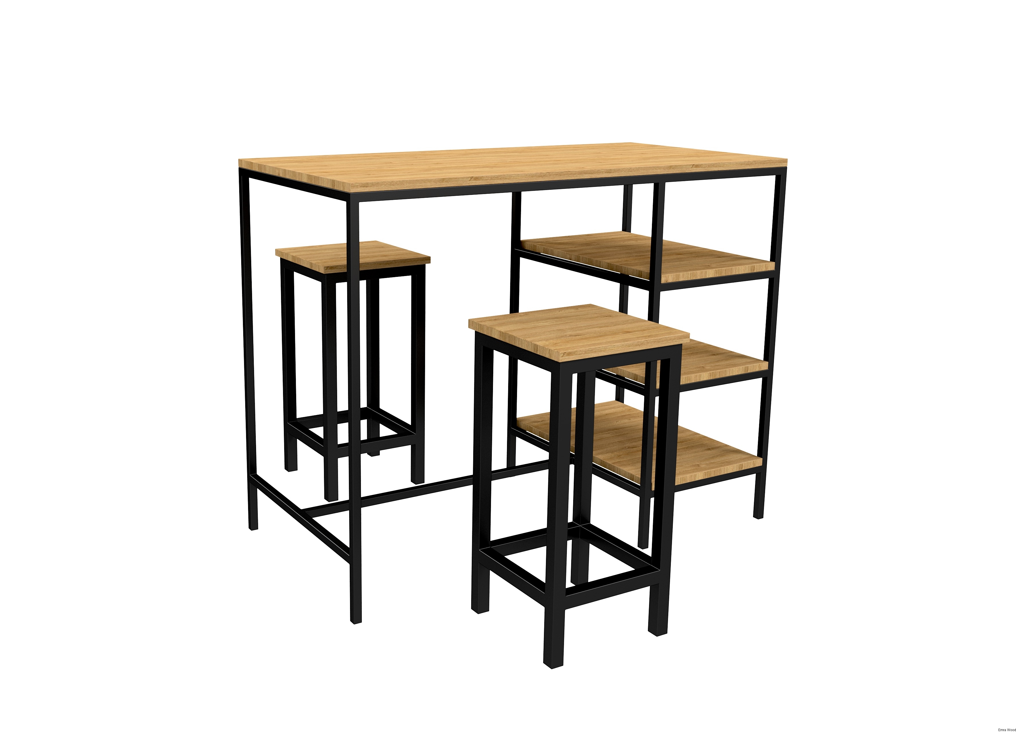 Zestaw Barowo -Jadalniany z Metalu i Drewna Litego Dębowego  Stół + 2 Taborety Model ZETS-23