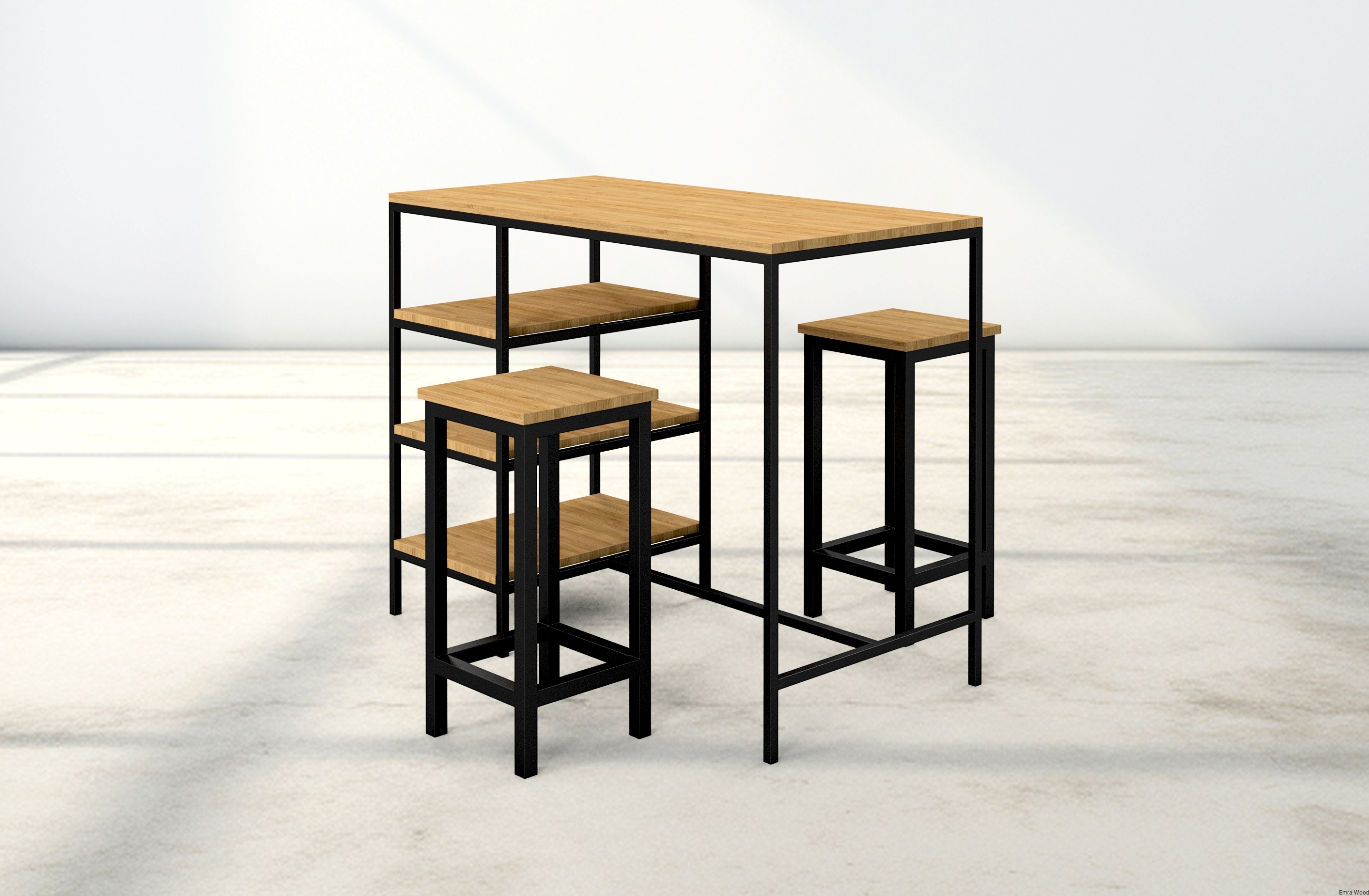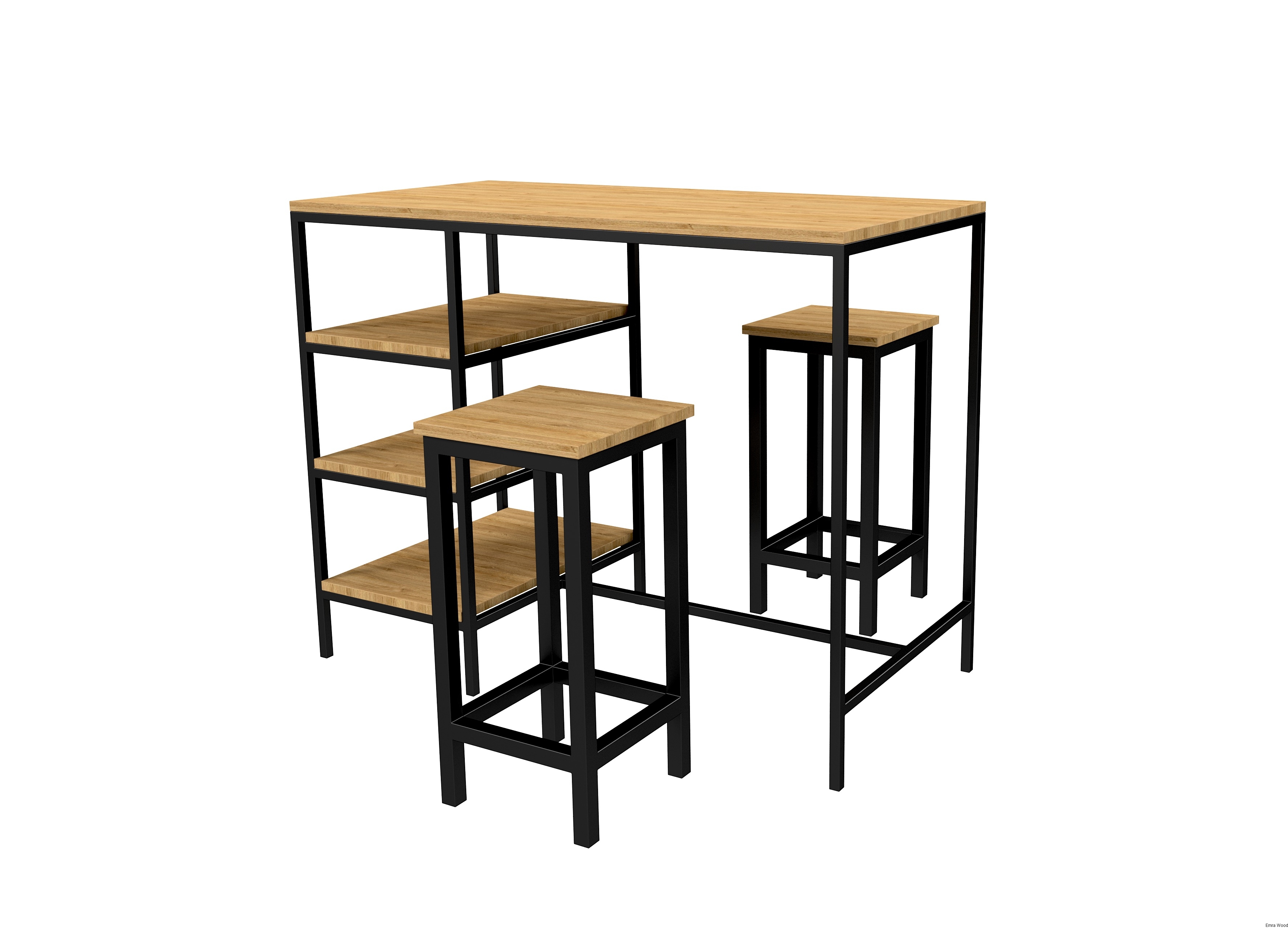 Zestaw Barowo -Jadalniany z Metalu i Drewna Litego Dębowego  Stół + 2 Taborety Model ZETS-20