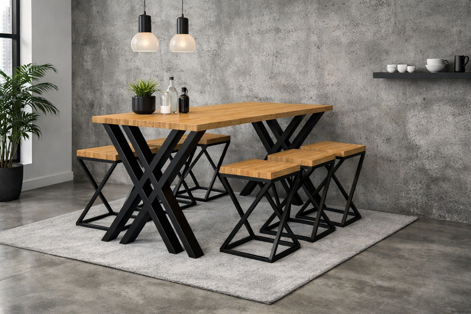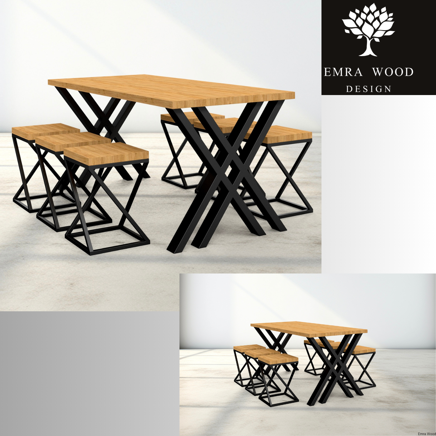 Unikalną cechą tego zestawu jest możliwość konfiguracji wymiarów, dzięki czemu możesz dostosować stół i hokery do swoich indywidualnych potrzeb oraz dostępnej przestrzeni. Niezależnie od wybranych rozmiarów, zestaw zachowuje swój harmonijny i spójny wygląd, dodając każdemu wnętrzu przytulności i elegancji.