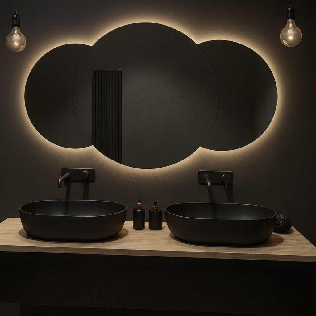 Zestaw składa się z trzech osobnych luster o szlifowanych krawędziach - lustra koła i 2x lustra w kształcie księżyca.
